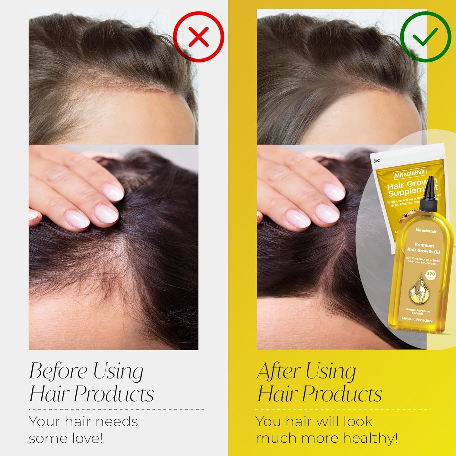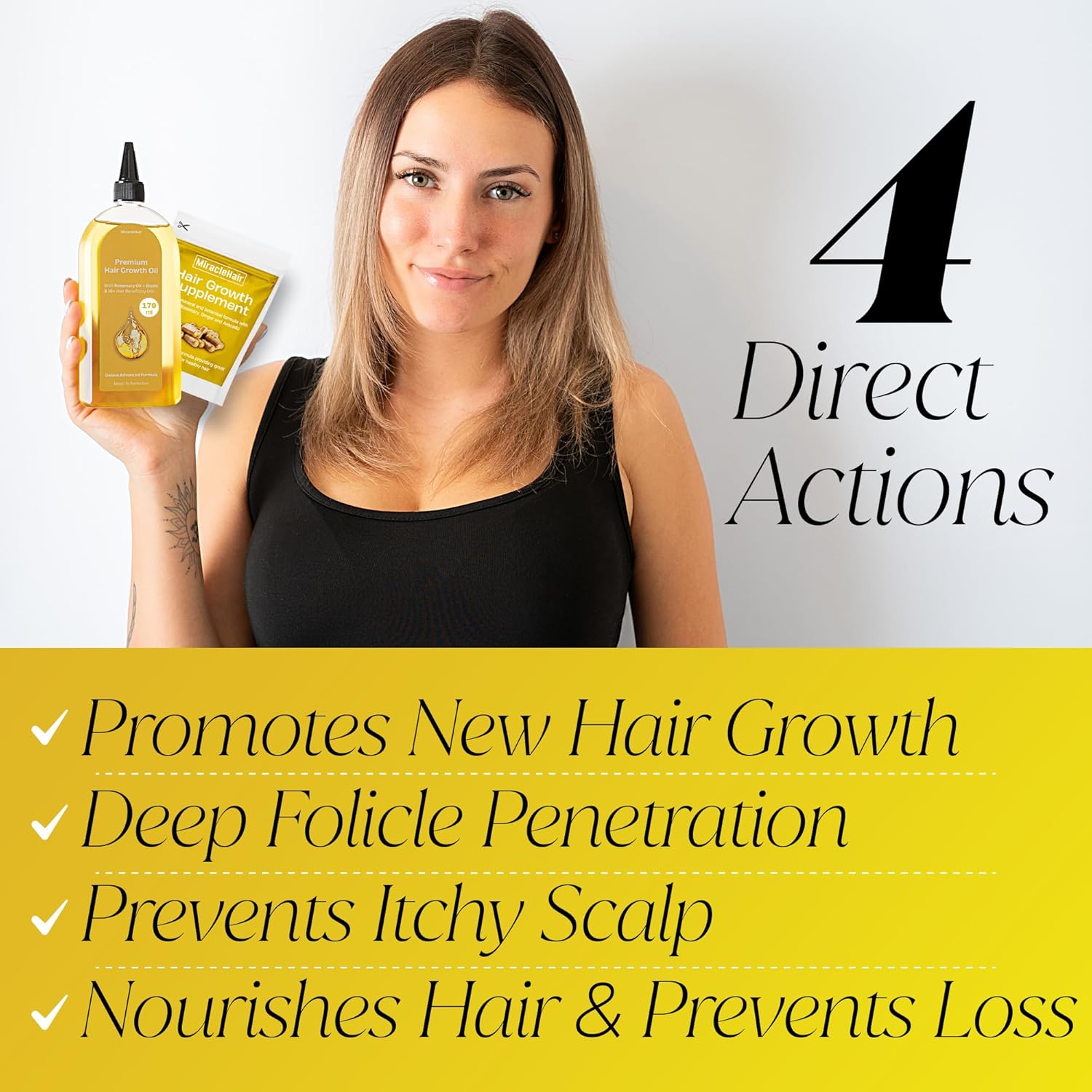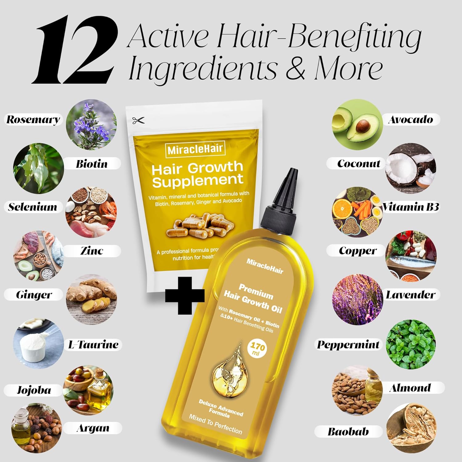 Premium haargroeiolie XL 170 ml + haarsupplement – rozemarijn, biotine, jojoba, castor, koffie, argan, baobab, gember en tea tree olie – haargroei en verdikking en verlies preventie – in het VK