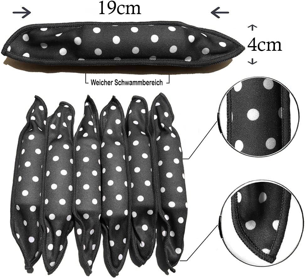 ich benutze diese tollen wickler schon länger und bin voller begeisterung weil ich sie übernachtim haar lassen kann ohne das sie drücken oder ziepen, auch super für den urlaub und unterwegs.manchmal trage ich sie auch als deko auf dem kopf wenn ich ein gepunktetes kleid oder top trage.