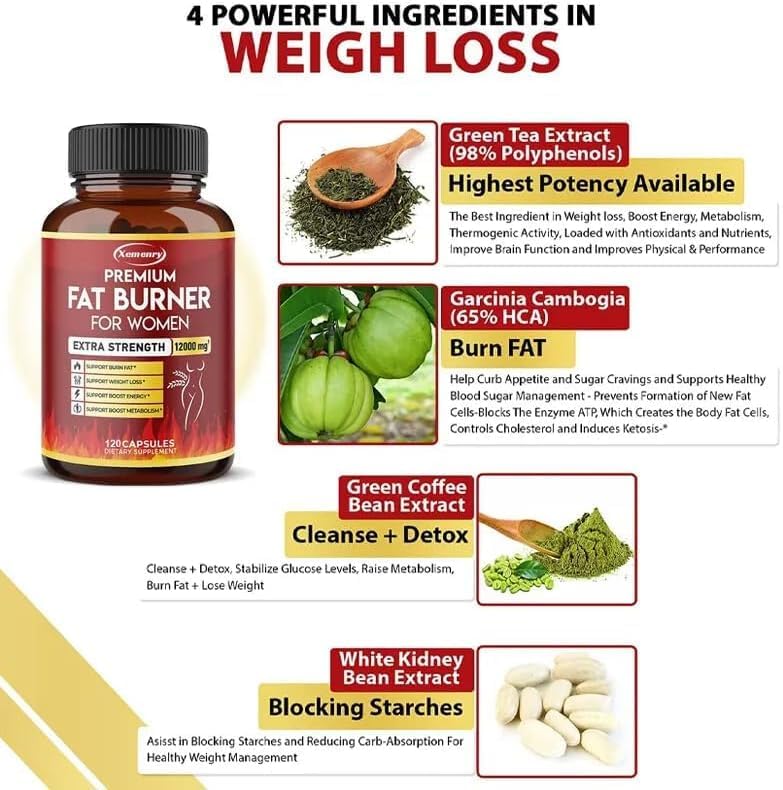 ✔️Premium vetverbrander voor vrouwen (120 capsules) om af te vallen, eetlust te onderdrukken, te reinigen en te ontgiften