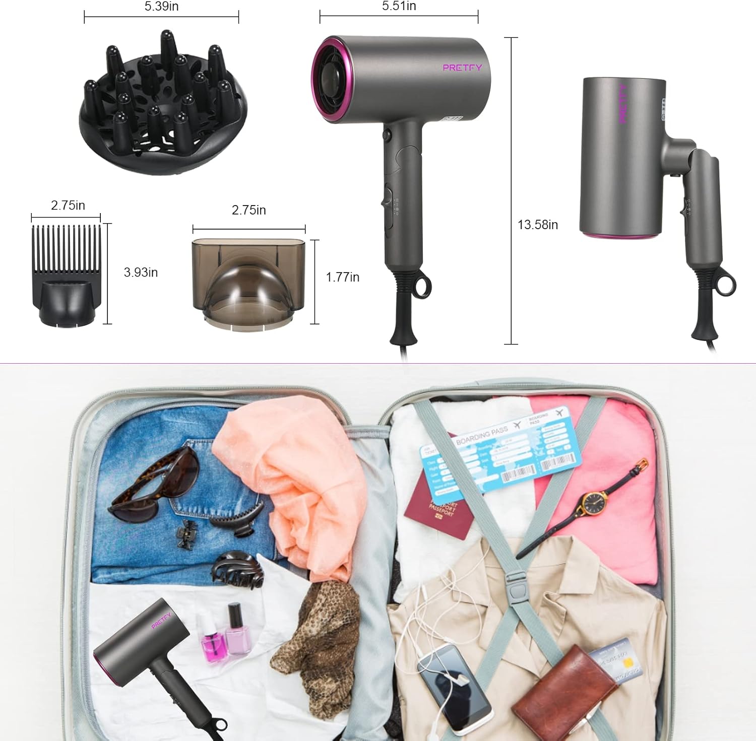 Pretfy Pelo Secadores Professionele Iónico, 2000W Secador de pelo de viaje plegable