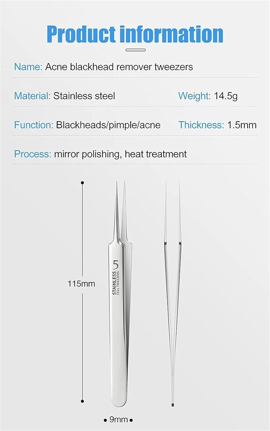 High-Quality Material : The nose blackhead remover in the set are made of durable, corrosion-resistant stainless steel, making them easy to clean and long-lasting. You will receive the blackhead remover tweezer: Tweezer/Straight Tweezer/Curved Tweezer or all of them, easy to meet your multiple cleaning needs.