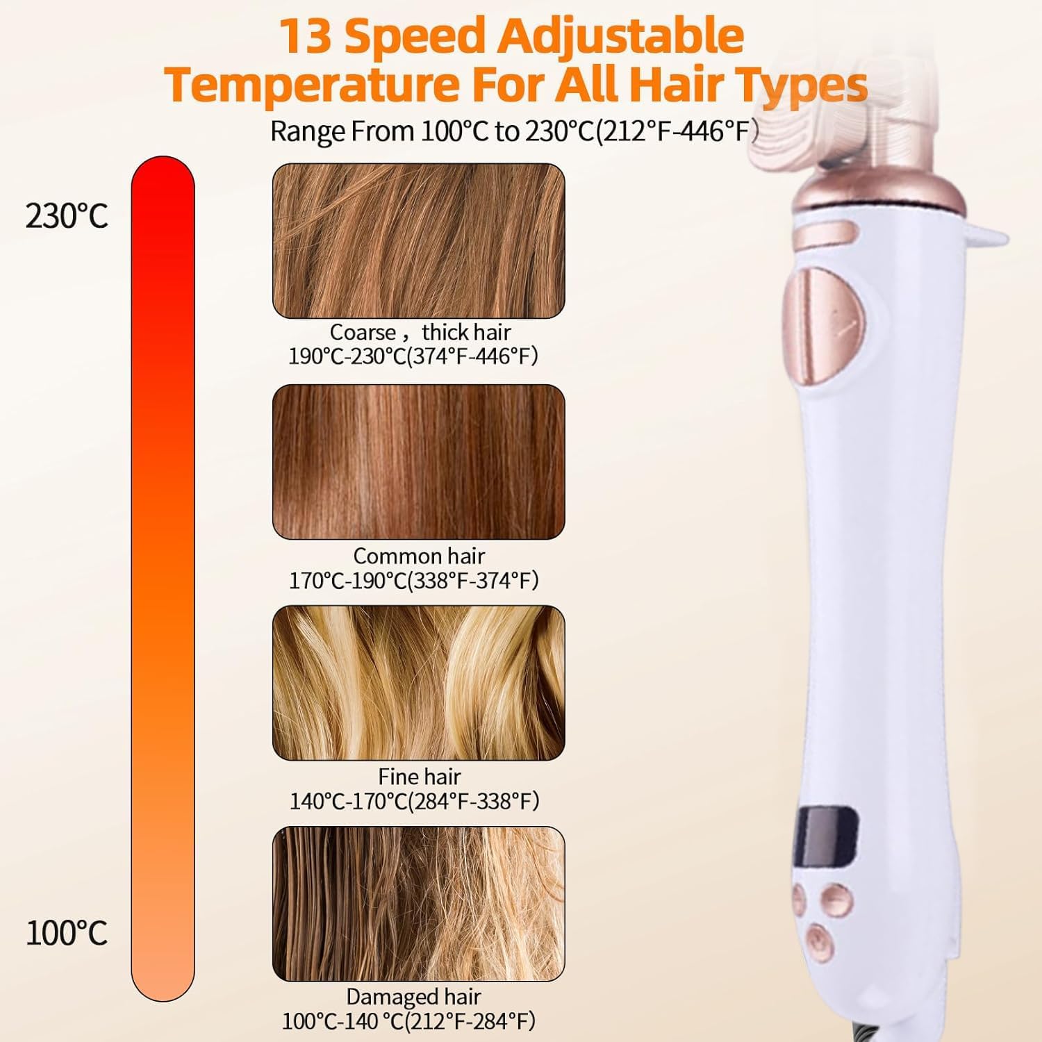 Instelbare temperatuur: onze krultang heeft 13 temperatuurinstellingen van 100 °C tot 230 °C voor alle haartypes. Je kunt de juiste temperatuur voor je haartype kiezen, of het nu beschadigd, normaal of hard haar is, zodat je gemakkelijk de juiste temperatuur voor je favoriete haartype en -styling kunt kiezen.
