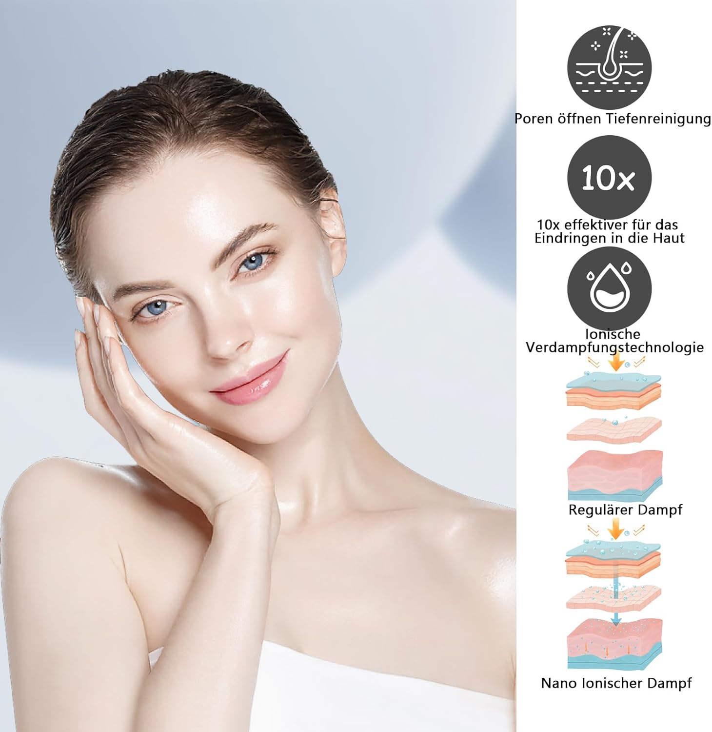 【Diepe reiniging en mee-eterverwijdering】: ben je nog steeds bezorgd over de “aardbeienase”? Deze gezichtsstomer is de beste keuze voor huidverzorgingstools. Open je poriën door het warme vocht van deze stomer te gebruiken om vuil, olie, dode huid, mee-eters en onzuiverheden grondig te verwijderen. Maak je huid frisser, gladder en stralender voor een effectiever gebruik van gezichtsreiniger, toner of peeling na het stomen.