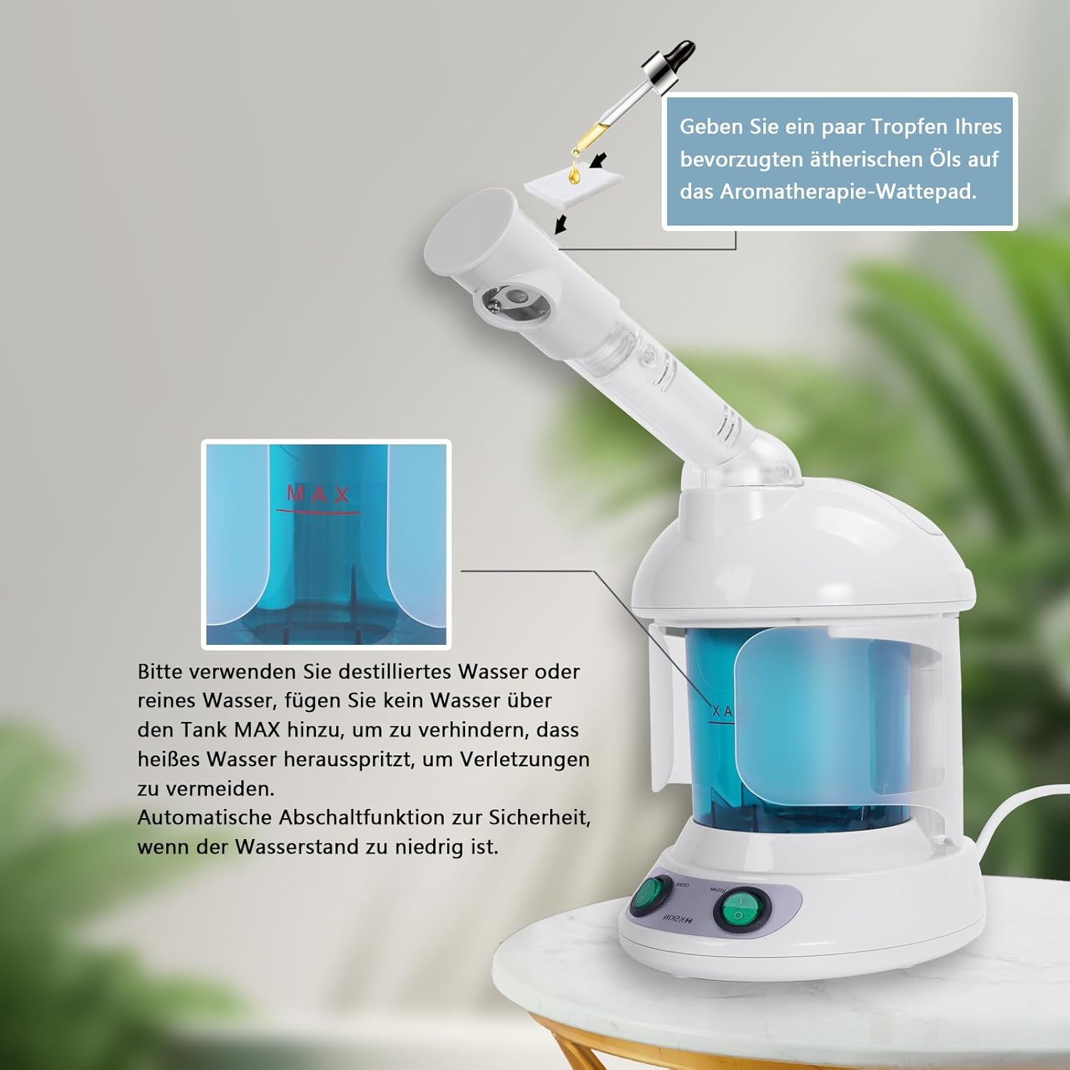 【Gemakkelijk te gebruiken en handig】: voeg gewoon water toe, sluit de stroom aan en schakel de stoomschakelaar in, wacht 3-5 minuten, je kunt thuis genieten van luxe professionele huidverzorging. Opmerking: alleen distilleerd water of gezuiverd water kan worden toegevoegd. Jouw veiligheid is altijd onze hoogste prioriteit. 24-uurs klantenservice, als je vragen hebt, laat het ons dan weten via Amazon of klanten Q&A in de lijst, wij