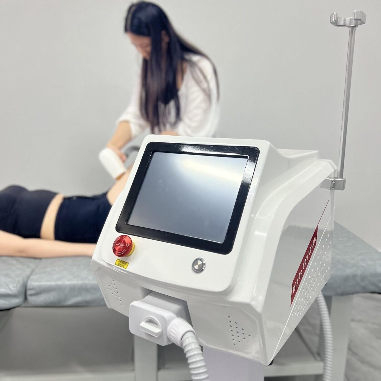 Het diodelaserapparaat gebruikt 808 nm, wat bijzonder effectief is voor melanocyten in haarzakjes en het omringende weefsel niet beschadigt. De laser kan door de haaras en de haarzakjes in melanine worden geabsorbeerd en omgezet in warmte, waardoor de temperatuur van de haarzakjes wordt verhoogd. Als de temperatuur genoeg stijgt om de structuur van de haarzakjes onomkeerbaar te beschadigen, verdwijnt de structuur van de haarzakjes na een tijd van natuurlijke fysiologische processen en bereikt zo het doel van een permanente ontharing.