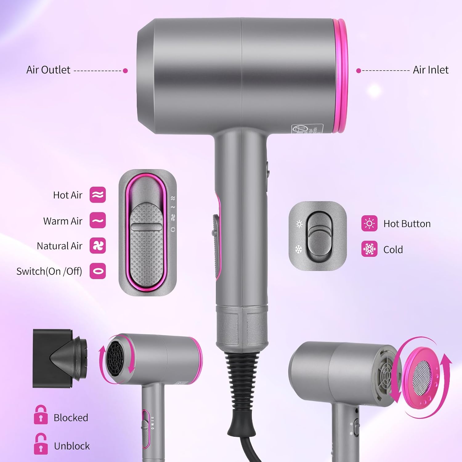Professionele ionische haardroger, 2000 W, haardroger met diffuser, sneldrogend, 120.000 omw/min, hoge snelheid, voor salon en thuis