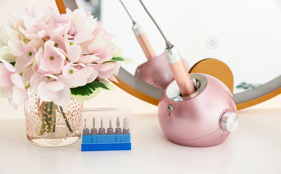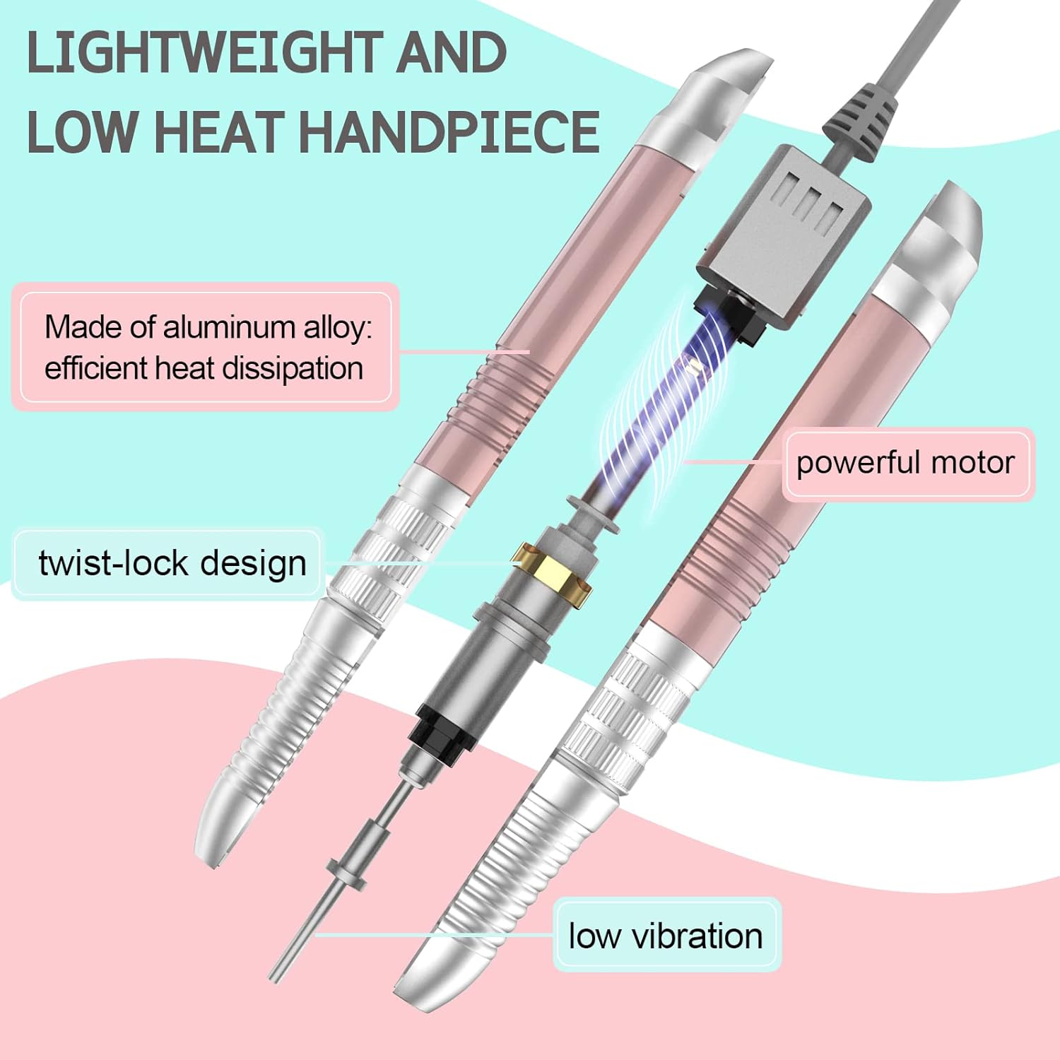 Professionele Nagelboor, Elektrische nagelboren set voor Manicure en Pedicure, 35,000 RPM, Hoge Snelheid, Laag geluidsniveau, Lage trillingen, Lage verwarming, Ricaricabile, Oro rosa