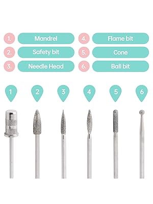 Multifunctioneel: De nagelboor wordt geleverd met 6 gewone tips, 6 kant-en-klare tips, die dienen voor nagelreconstructie, manicure, vormfixatie, schuren, polijsten en zelfs boren, ideaal voor het verwijderen van semi-permanente nagellak en gel op de nagels, om dode huidcellen te duwen, maar ook om nagels te vijlen en hun dikte te verminderen. het is geschikt voor moderne en goed afgewerkte manicures en pedicures.
