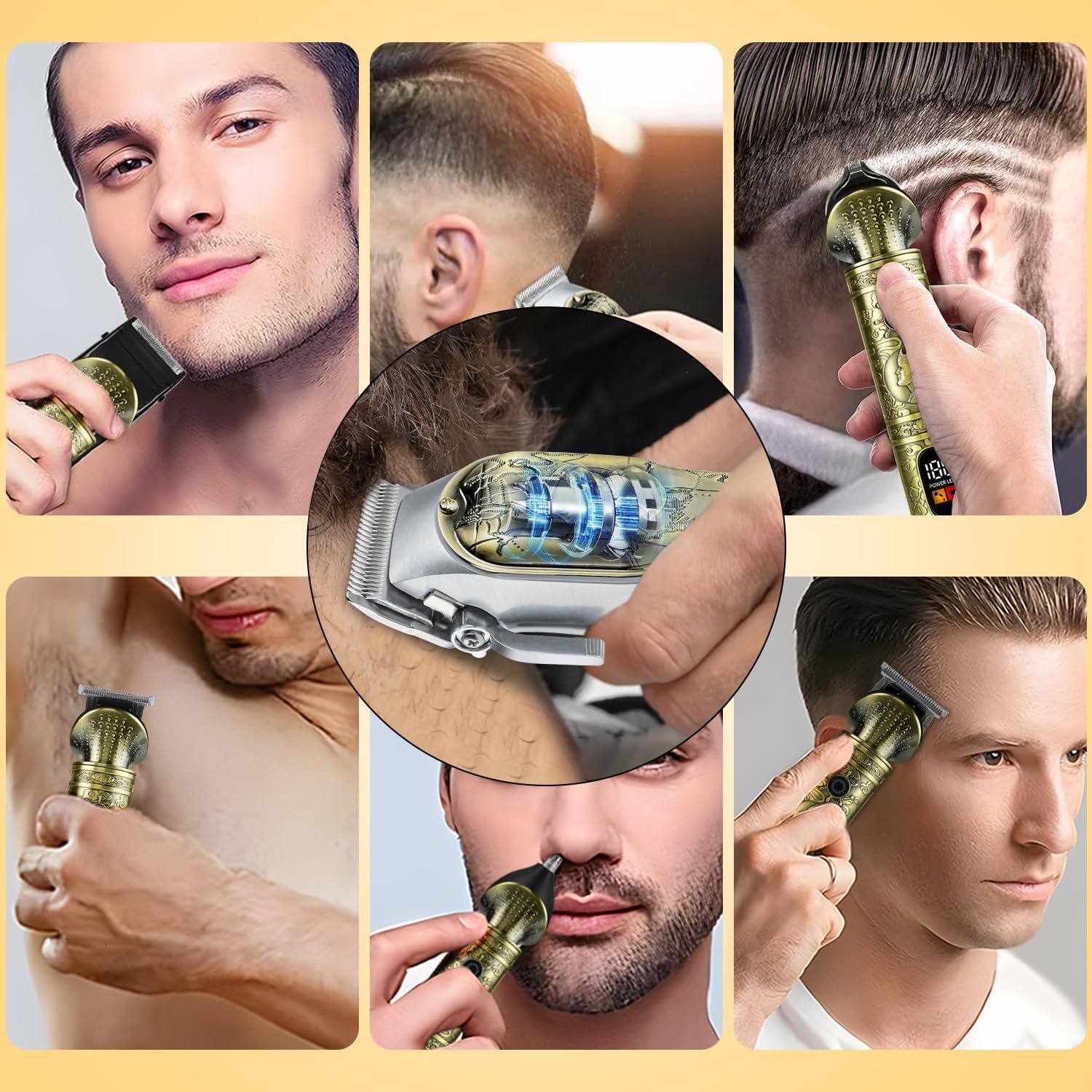 Multifunctionele 5 + 1 herentrimmerset: nieuw bijgewerkte tondeuse gecombineerd met 5-in-1 multifunctionele trimmer, draagbaar, multifunctionele trimmer bevat een T-vormige trimmer met 4 geleidingskammen (1 mm, 3 mm, 5 mm, 7 mm), een mannelijke trimmer met 5 geleidingskammen (3 mm, 6 mm, 9 mm, 12 mm, 15 mm), een mini baardtrimmer neus. tondeuse en scheerapparaat, om aan al je dagelijkse behoeften te voldoen
