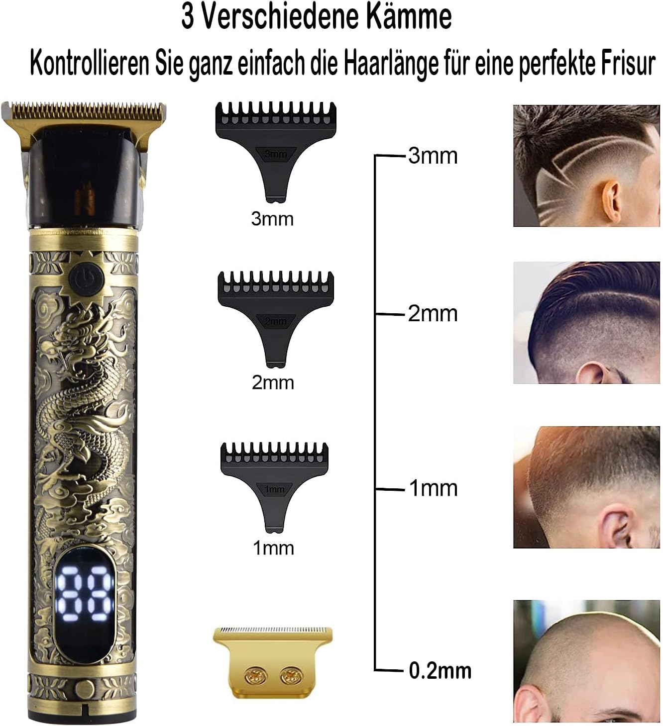 ✂ 【Multifunctionele tondeuse voor heren】 Tondeuse voor heren, geschikt voor alle kapsels: tondeuse, baardtrimmers, precisietrimmers voor snorren, favorieten, contouren, stoppels, andere haartypes.