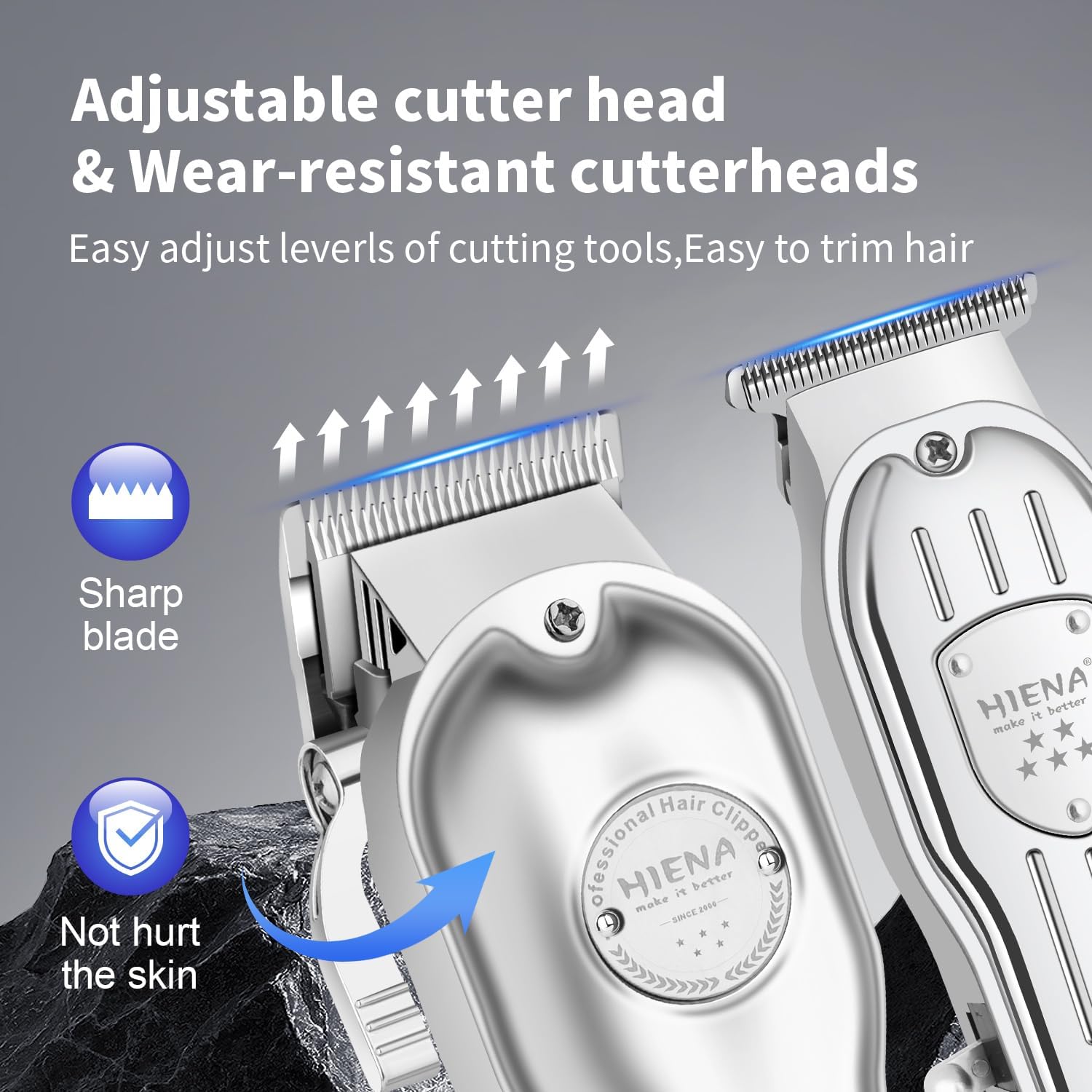 Precisie roestvrijstalen messen: de kappersset is uitgerust met de geavanceerde precisie roestvrijstalen metalen messen om scherpte en veiligheid te garanderen, wat een comfortabele en efficiënte haarknipervaring oplevert. De verstelbare mes-tondeuse en T-mes-trimmerset is geschikt voor een verscheidenheid aan stijlen, waaronder verloop, vervaging en artistiek houtsnijwerk.