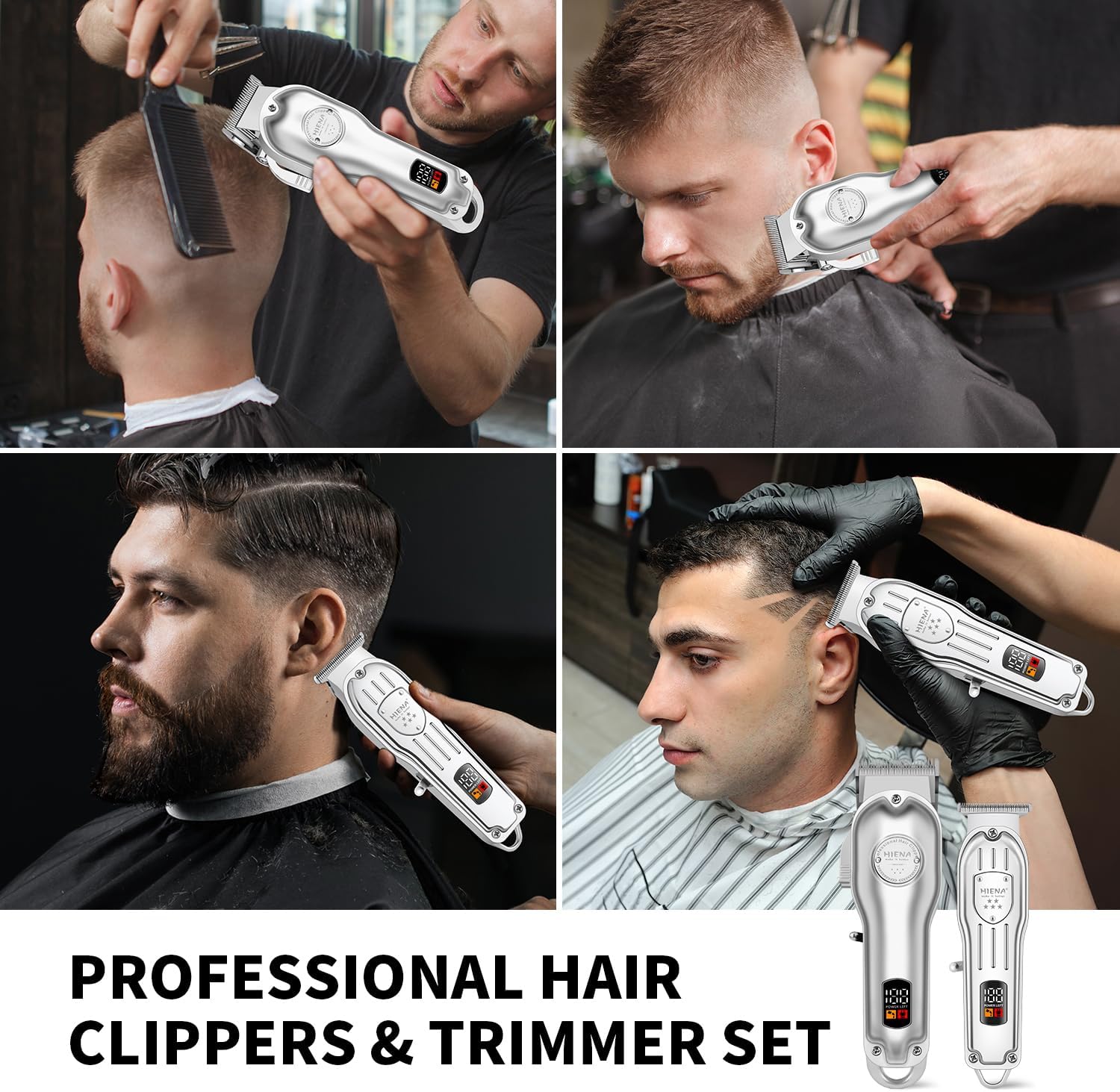 This review is for the HIENA PRO Professional Hair Clippers Set for Men, Cordless Barber Clipper Trimmer Set, Hair Cutting Machine Kit, Rechargeable Clipper Set for Barbers with LED Display (Black).I ordered this for the hubbie but I will be using it too to help with the more inaccessible bits of head. I love the accessories it has, especially the case.The LED display on the hair clippers is really useful – it clearly shows the battery life, so I’m never caught off guard mid-haircut. The cordless design is another big bonus, especially when trimming around the back of the neck and ears. It’s easy to manoeuvre without worrying about getting tangled in cords. The battery holds up well too, and I’ve managed a couple of haircuts before needing to recharge.In terms of cutting performance, the clipper does a decent job. The blades are sharp enough to cut through thick hair without any pulling or snagging, and the adjustable guards provide good versatility for different lengths and styles. However, the unit itself feels quite light, which doesn’t give it that premium, quality feel I was expecting. While it works smoothly and doesn’t overheat, the lighter build makes it feel less robust than other clippers I’ve used.Where this set falls a bit short for me is the trimmer. It’s fine for quick touch-ups or edging, but it feels underpowered compared to the clipper, particularly when dealing with thicker areas like sideburns or a beard. I’ve found myself going over spots multiple times to get a clean finish. It’s okay for light trimming, but if you’re looking for precision detailing, you might need something a bit stronger.Overall, this set is good for home haircuts or for those who need a basic cordless clipper. The clipper itself works well, but the lighter feel and underpowered trimmer hold it back slightly. The LED display and battery life are handy features but don’t expect the trimmer to be quite as strong as the main clipper.