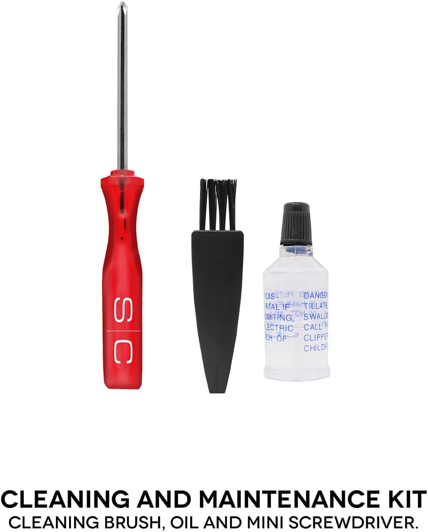 ✅ IN DE VERPAKKING. Stylecraft Instinct professionele herentondeuse met vast oplaadstation met kabel en netvoeding, 3x Verwisselbare covers, 8 dubbel magnetische opzetstukken van 1,5 – 19 mm, 3 verwisselbare covers (rood, zwart, blauw), blade ondersteuning, reinigings- en onderhoudskit, Micro-USB-kabel. De reinigingsset bestaat uit een mini-schroevendraaier, smeerolie, een borsteltje en reserve schroefjes.