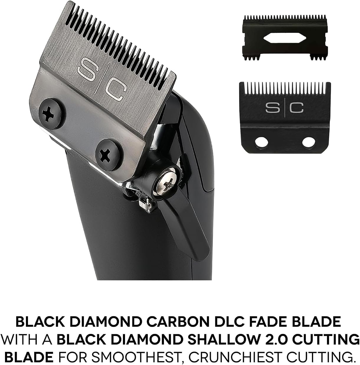 45 mm FADE DLC Black Diamond Carbon mes voor het verwijderen van volume in één keer en superieur kapsel in laagjes, een Shallow 2.0 Black Diamond-snijmes voor een gladdere en gelaagde snit.