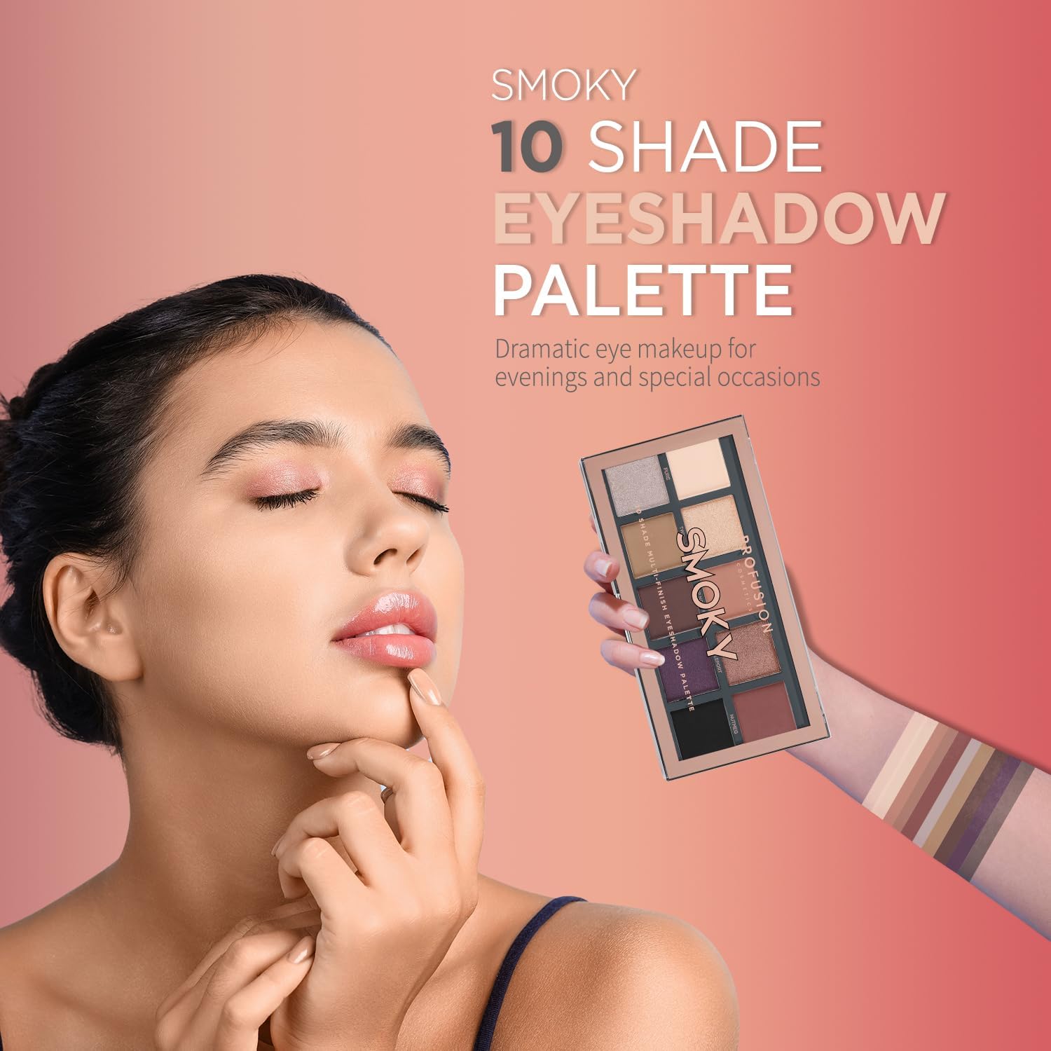 SCHITTERENDE OOGSTIJLEN: Duik in een wereld van kleur met Profusion Cosmetics’ Smoky 10 Shade Palette. Tien rijk gepigmenteerde, multi-finish tinten kunt u een scala aan fascinerende ooglooks te creëren.