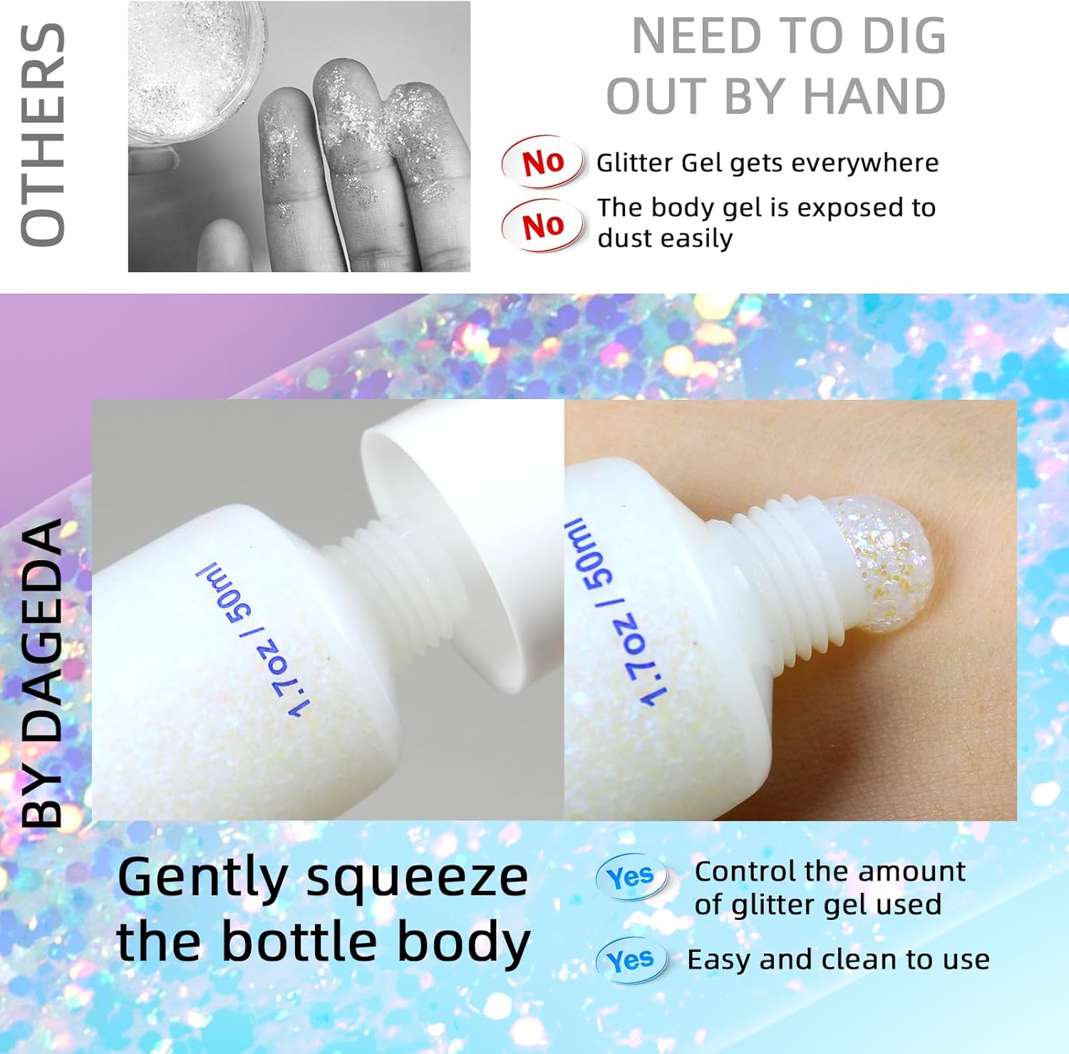 [Laser Flash Powder]: This body glitter is made of holographic glitter, which is light and durable. The Color and luster of the laser sequins vary with the angle of view. Make you stand out from the crowd.