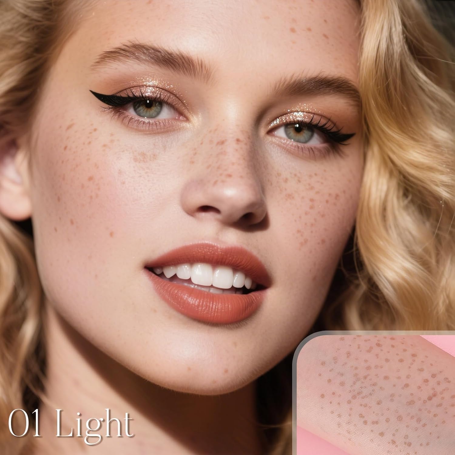 01 Light Freckle + Black Eyeliner.