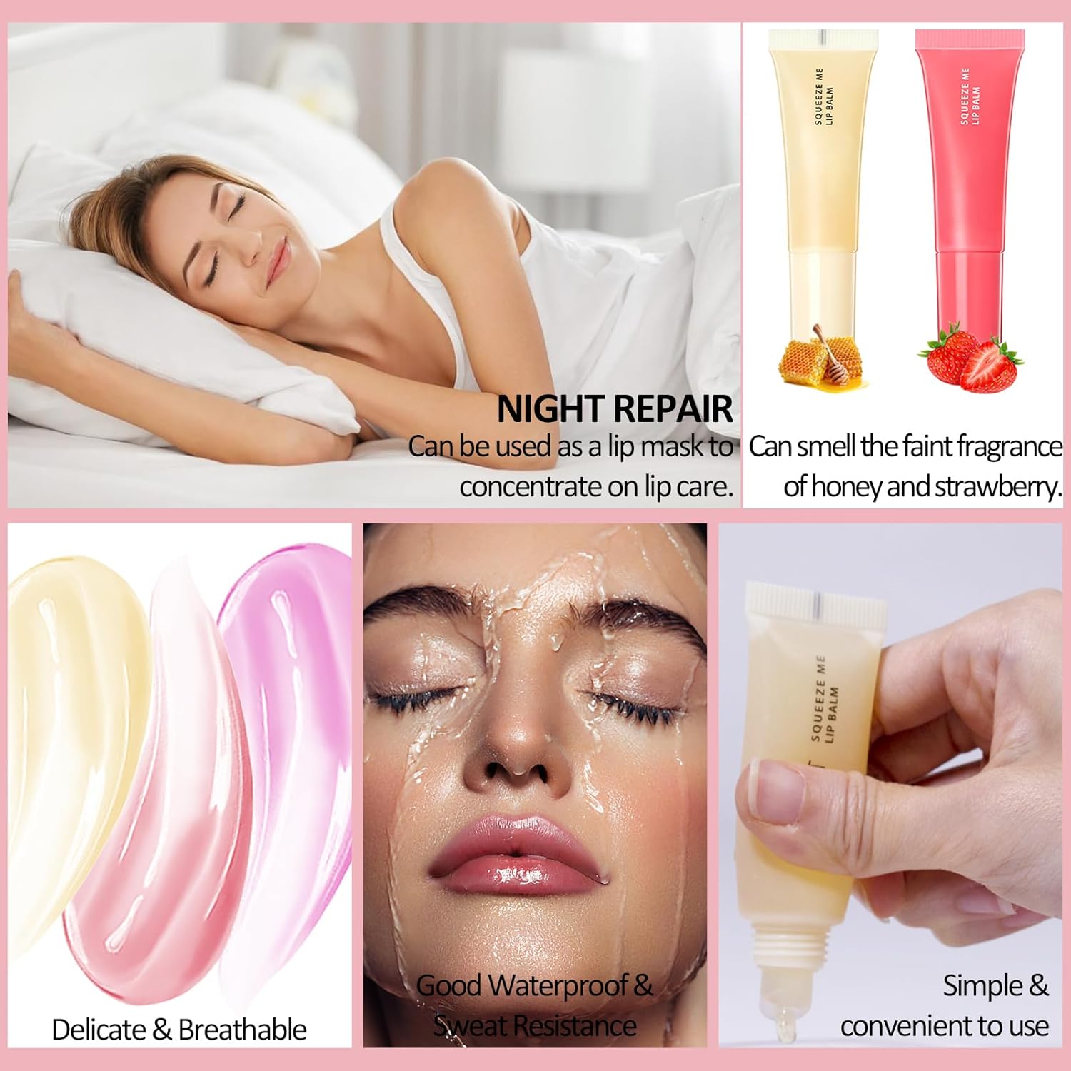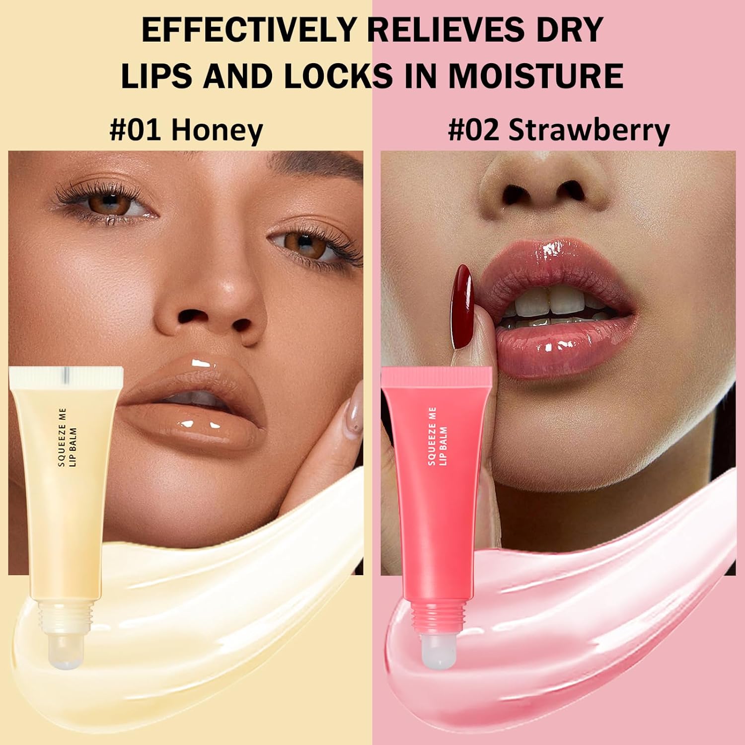 【Verkleurende geur & lipplumping】Deze knijp-lippenbalsem-set bevat twee smaken van honing en aardbeien. Wanneer je ze gebruikt, kun je de verkleurde geur van honing of aardbeien ruiken. Bovendien heeft deze glanzende lippenbalsem een plumping effect, waardoor je lippen er voller uitzien.