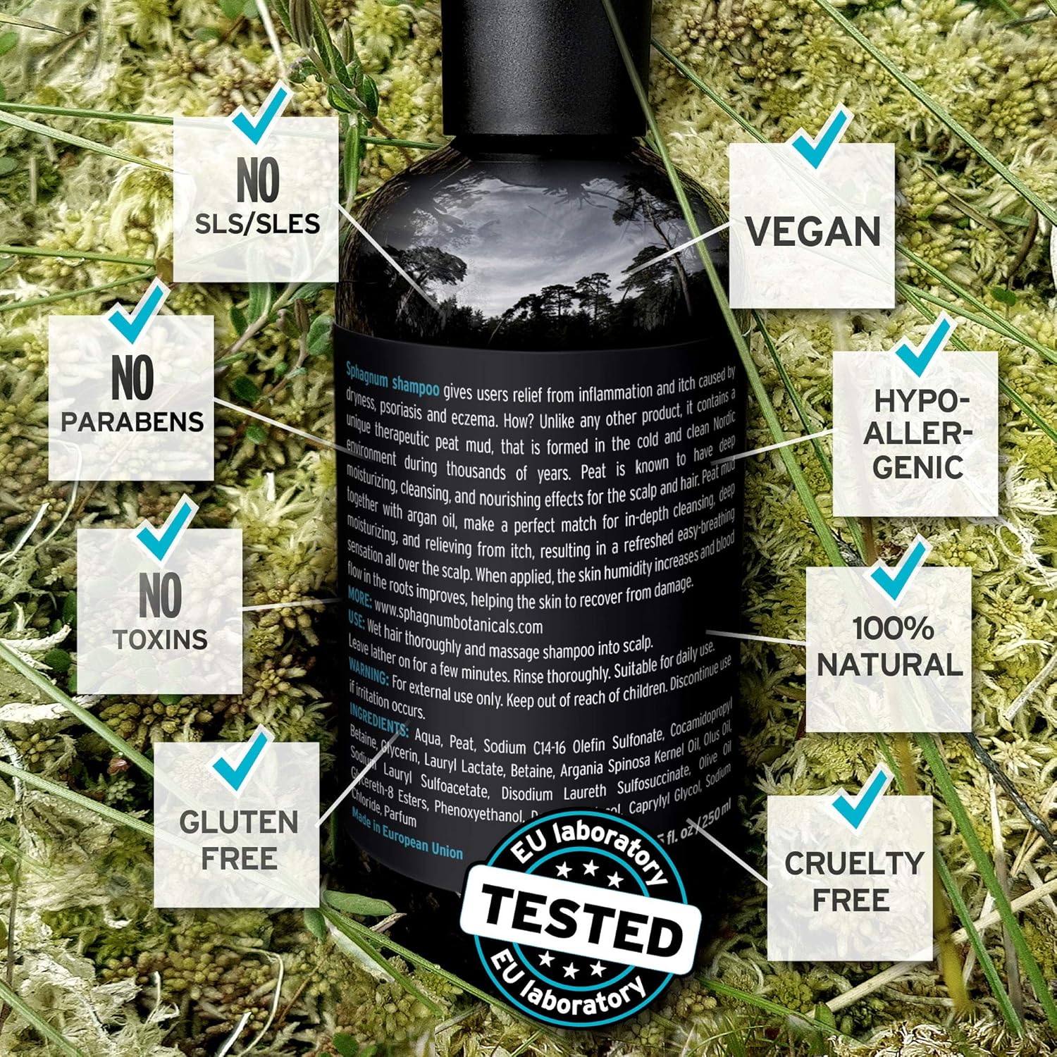 ✅ 100% NATUURLIJKE INGREDIËNTEN: Deze sulfaatvrije shampoo bevat geen koolteer. Het is samengesteld met turfmodder, arganolie en uitsluitend organische materialen. De gebruikte turf is 100% biologisch, geoogst in Noord-Europa en is zeer rijk aan helende fulvine- en humuszuren.