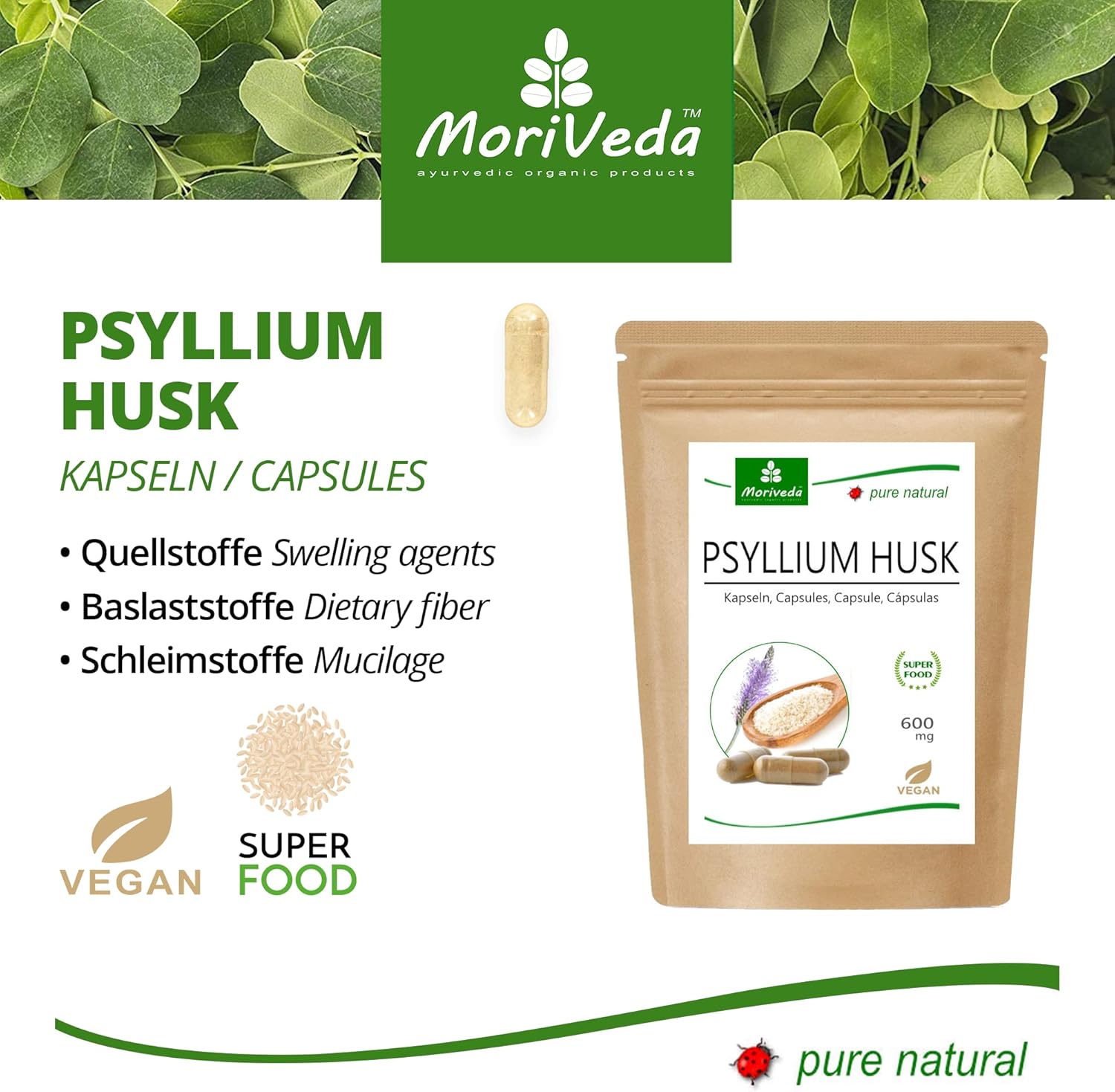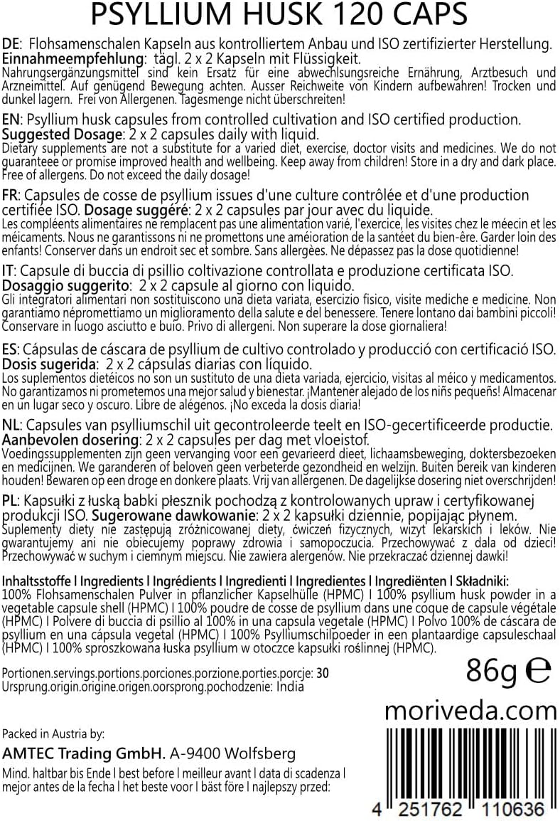 Psyllium husk capsules 100% psyllium husk poeder – darmspijsvertering detox – veganistisch en glutenvrij – 120 capsules by MoriVeda