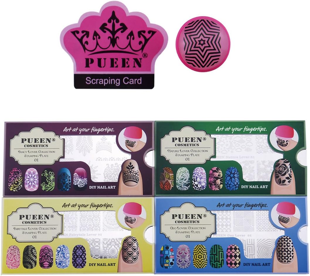 Set van 4 Nieuwe Unieke Nail Art Image Platen Ontworpen door pueen