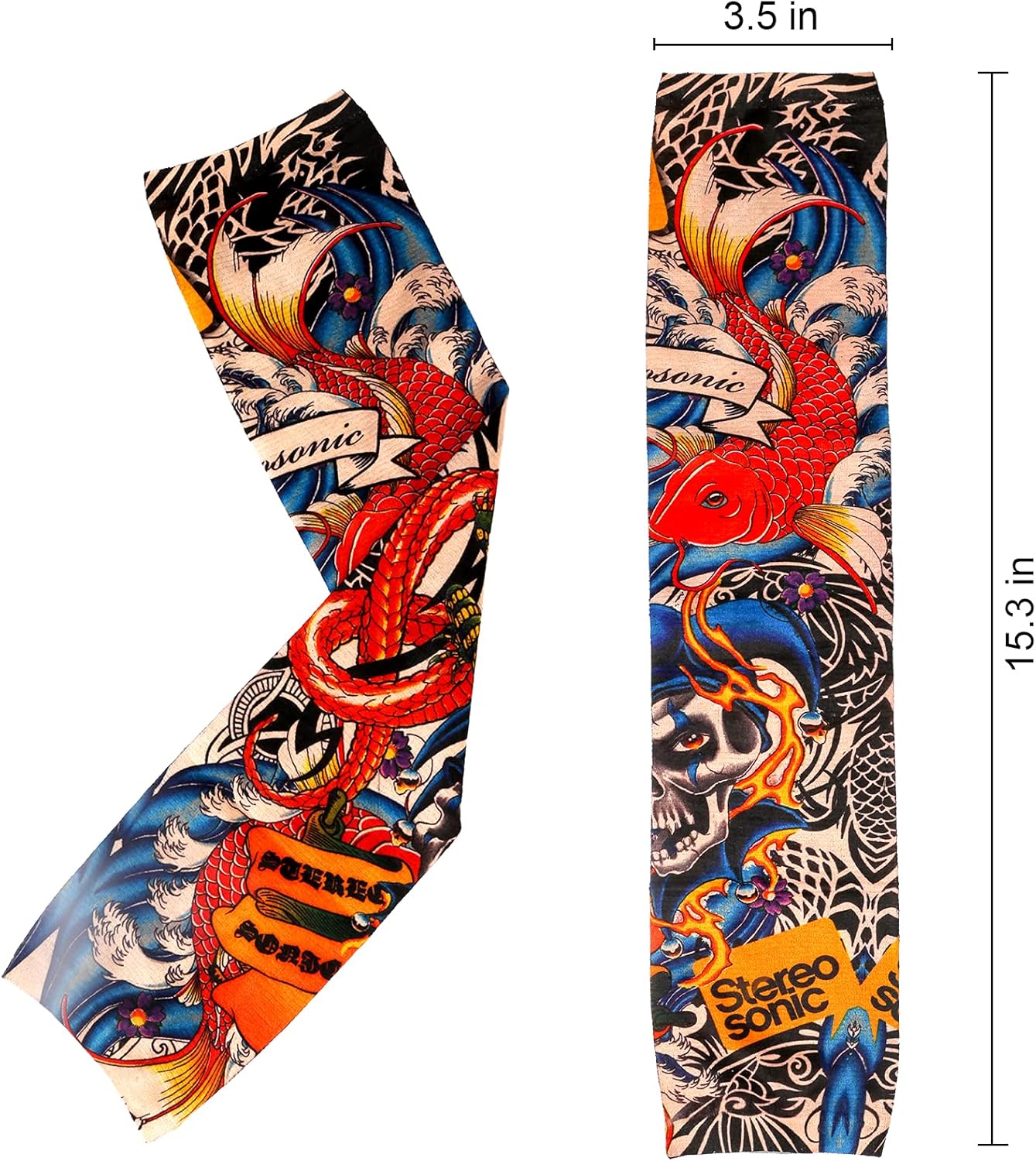 Elastic sun protection nylon material: made of 92% nylon and 8% elastane. Flexible, can be extended as desired, depending on arm size. In summer, you can protect your arms from the sun by temporary tattoos on the sleeves to protect your arms.