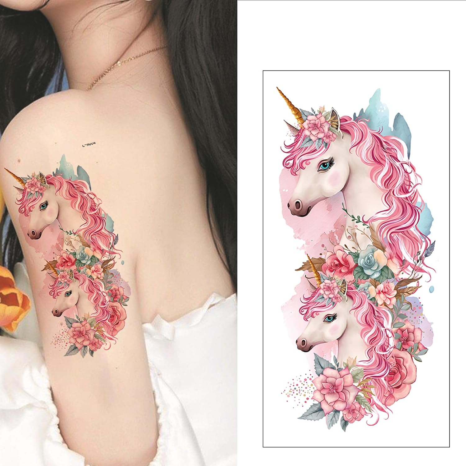 Waterproof and durable art tattoos: With a duration of 1-2 weeks, made of high-quality materials, our tattoos look real and safe for all skin types and ensure that you can enjoy your stylish look and comfortable wearing experience for a longer period of time.