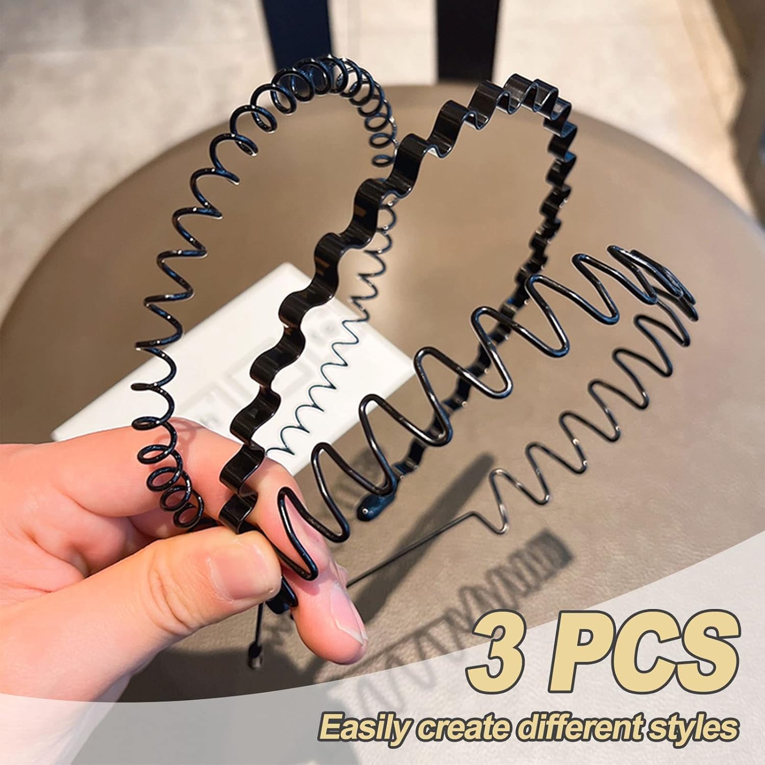 Qufiiry 3 Pieces Men’s Hair Band Wavy Metal Hair Band Headbands Flexible Multiple Styles Sporty Fashion Accessories for Men and Women