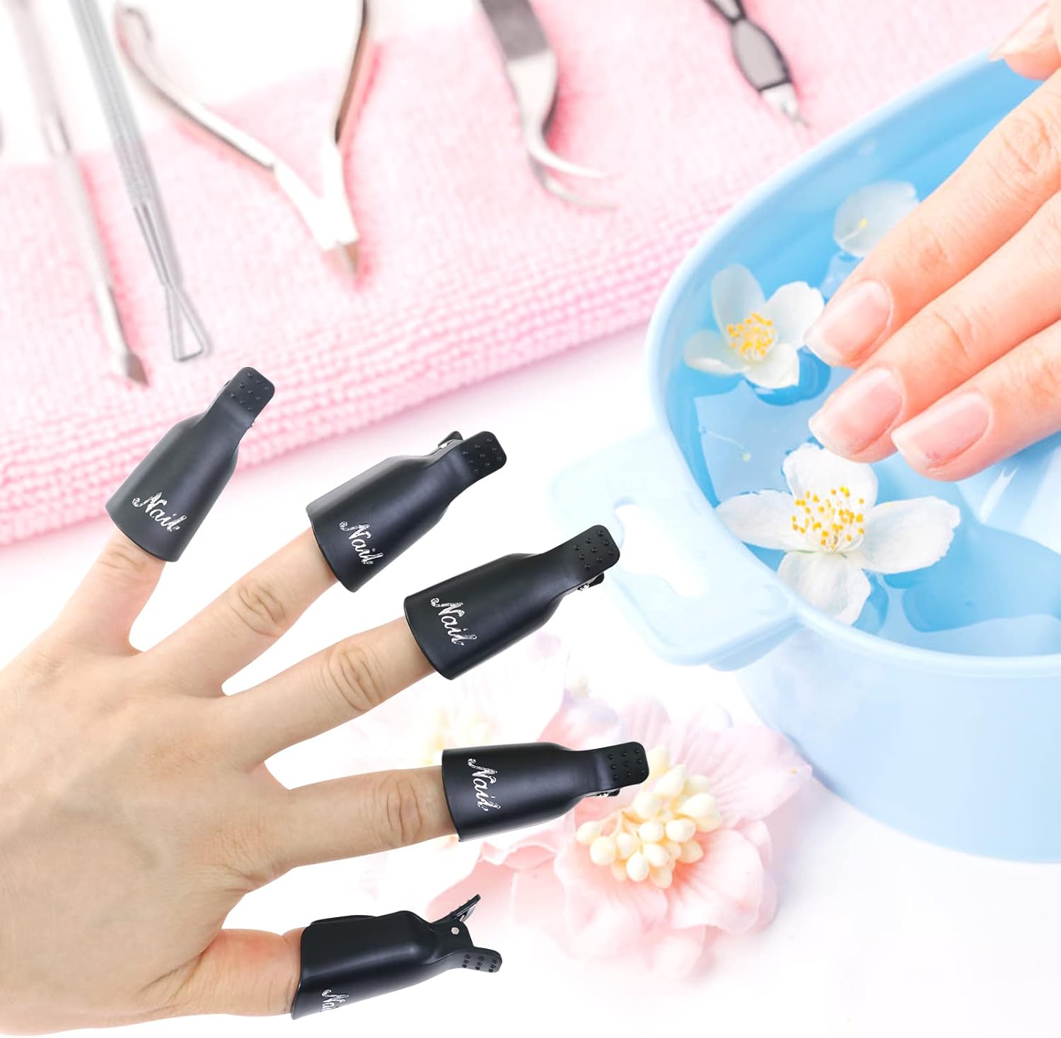 Nagellakremover clips: 10 stuks nagellakverwijderingsclips, ze zijn gemaakt van hoogwaardig kunststof, duurzaam genoeg voor dagelijks gebruik; de nagelverwijderingsclip heeft de juiste maat om je vingers en het wattenschijfje stevig op hun plaats te houden. Het meegeleverde “gereedschap” helpt zeer goed om de geweekte lak eenvoudig te verwijderen, de putter drukt ook de nagelriemen goed.