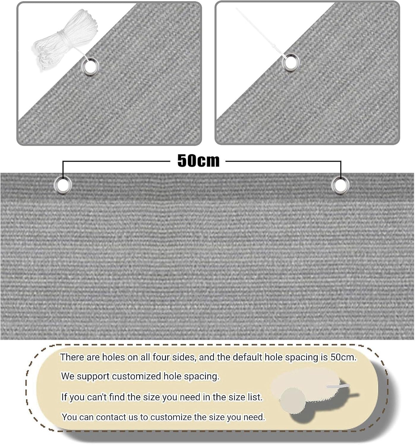 Eenvoudige installatie: het gaat om een metalen oog van 50 cm, dat stevig en niet vervormd is. Gebruik gewoon 4 touwen om de installatie te voltooien. Je kunt zeilen op muren, ramen, zuilen en zelfs bomen aanbrengen.
