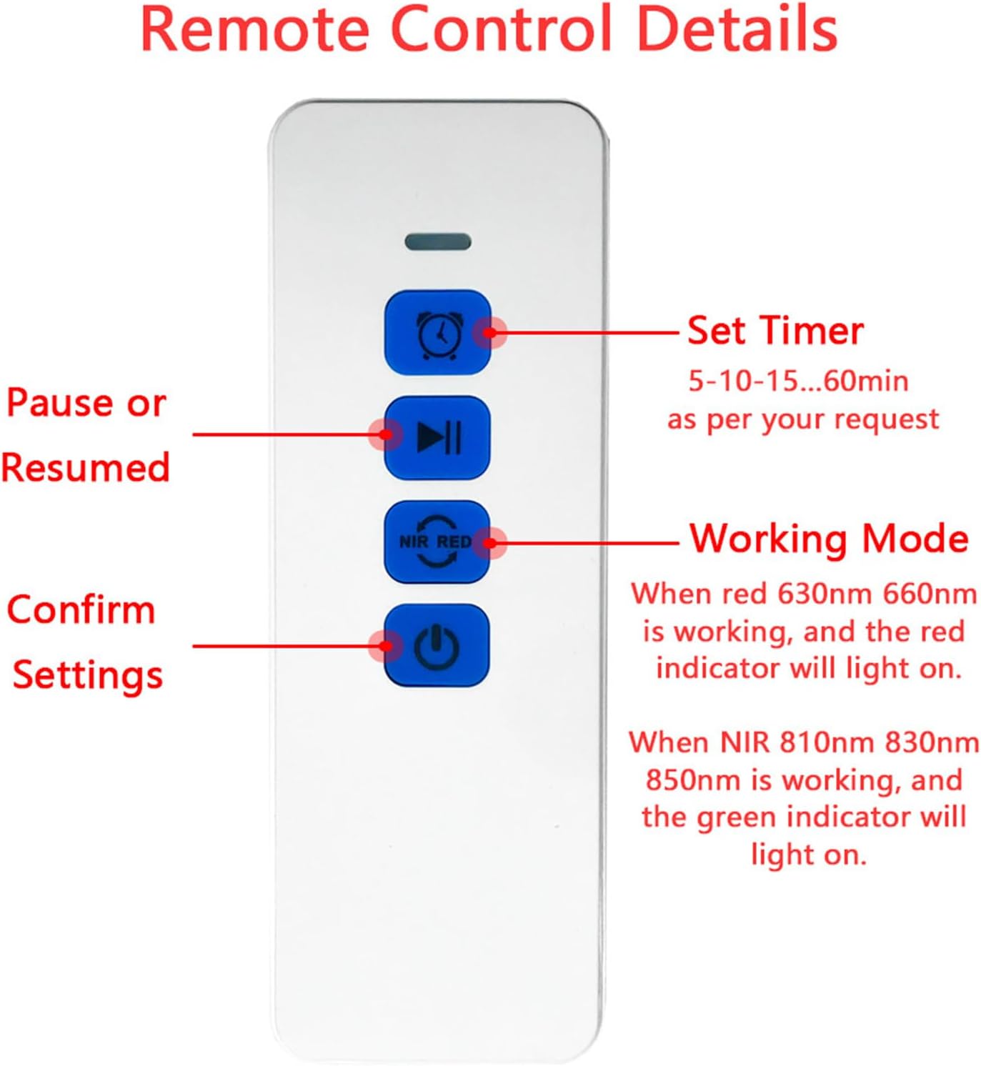Spectrale band: 630 nm, 660 nm, 810nm, 830nm, 850 nm