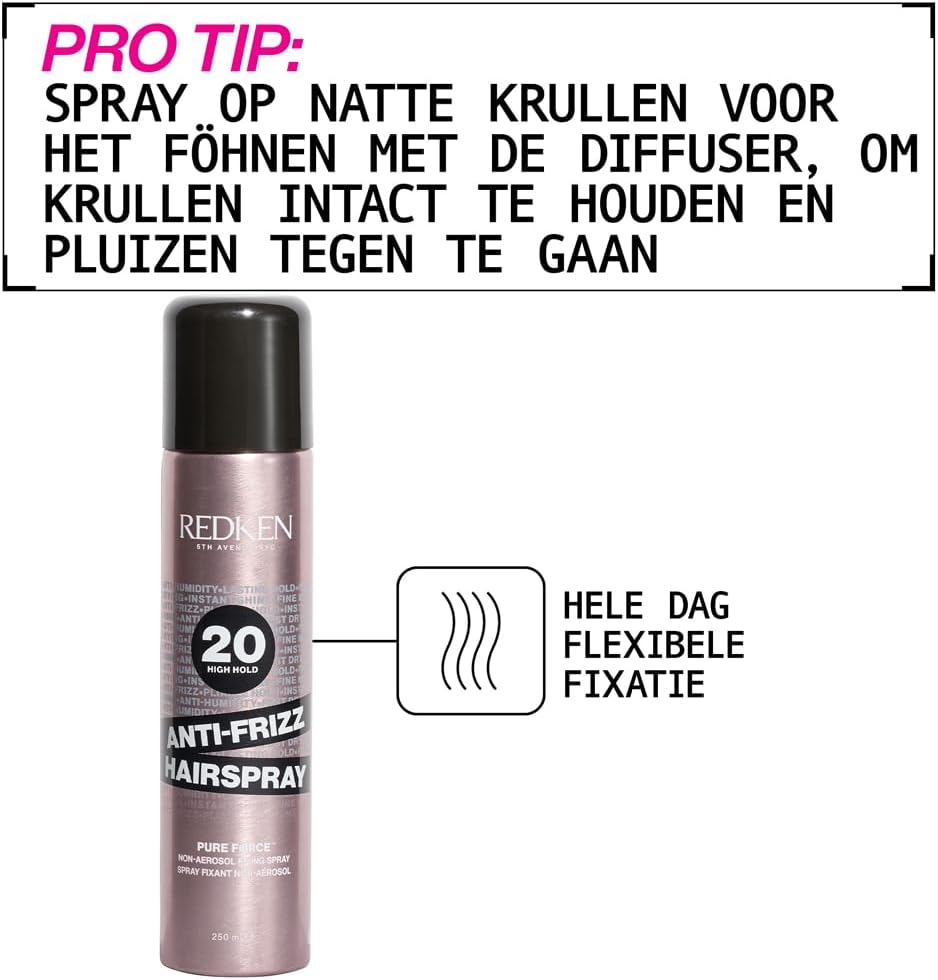 Redken, Voor Alle Haartypes, Tegen Frizz en Vochtigheid, Sneldrogend Effect en Langdurige, Soepele Fixatie, Zonder Aerosol, Anti-Frizz Haarspray, 250 ML
