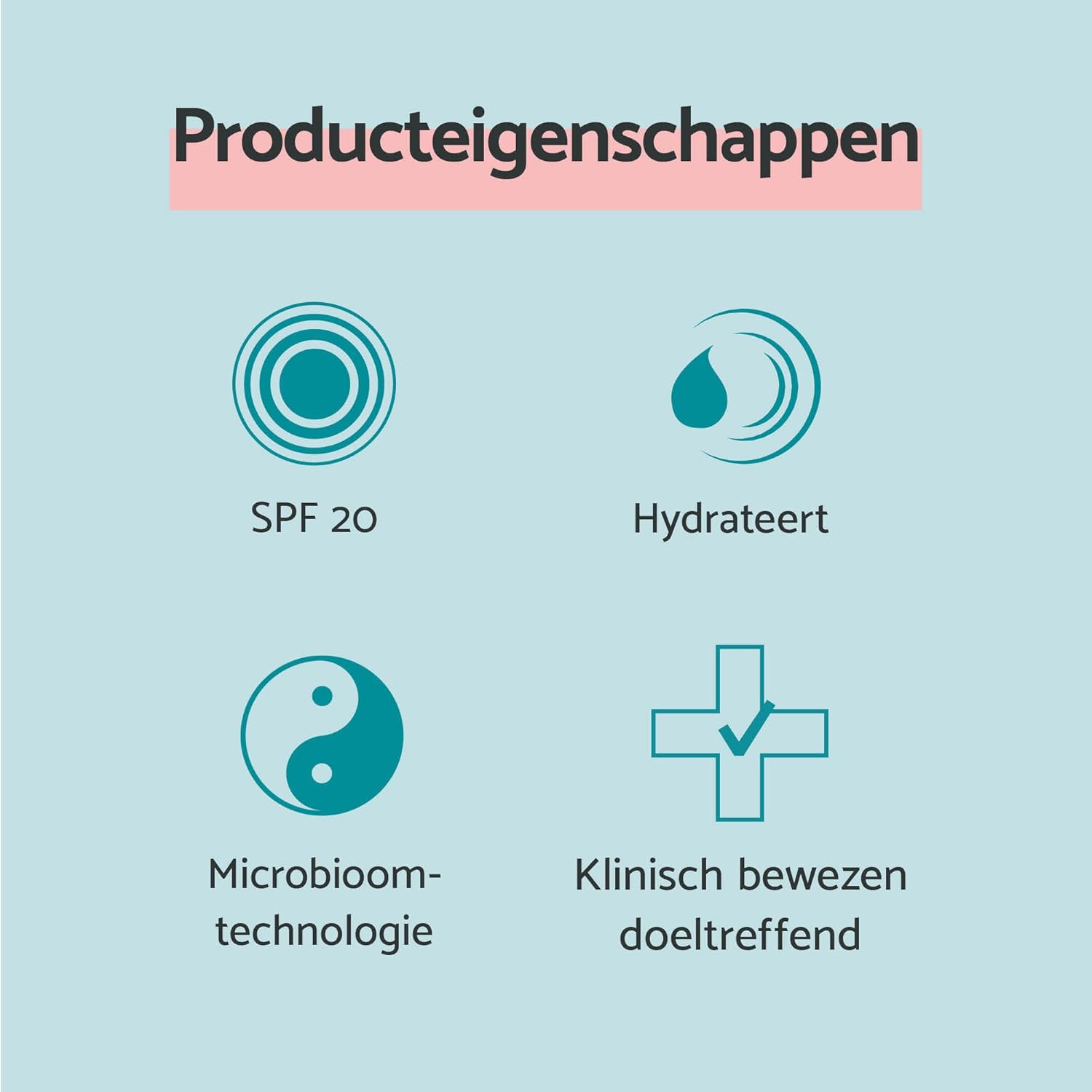 ★ MICROBIOME TECHNOLOGIE – Het microbioom van de huid is het ecosysteem van bacteriën die op de huid leven. Het microbioom heeft een directe invloed op het algehele uiterlijk van de huid; een onevenwichtig huidmicrobioom zal leiden tot huidproblemen. Onze Microbiome Technologie richt zich op, stimuleert en voedt de microflora om ervoor te zorgen dat de biodiversiteit en homeostase van de huidmicrobiota in balans is.