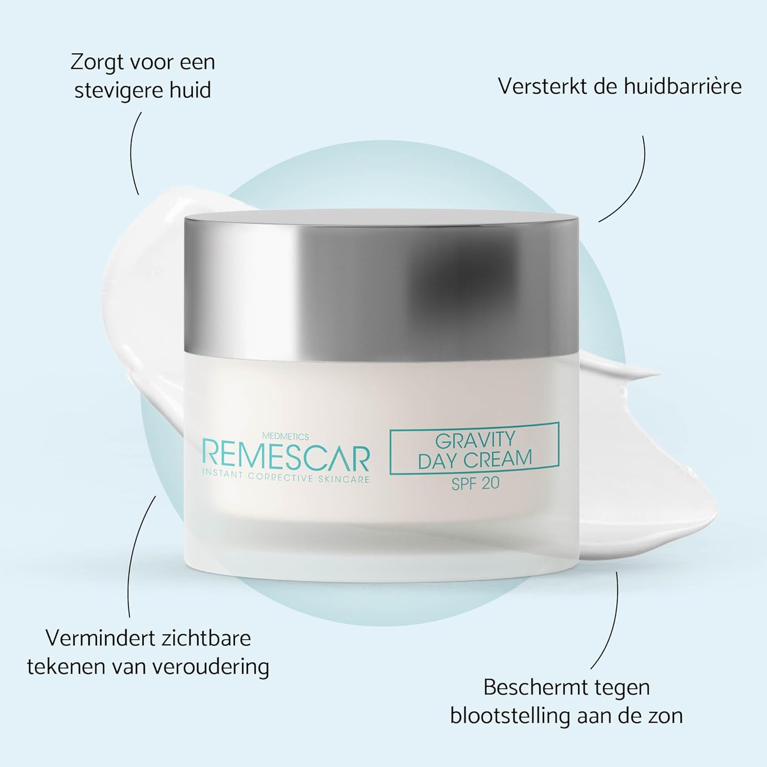 Remescar Gravity Dagcrème SPF 20, 50 ml – Gezichtsverzorging met Collageen en Elastine, Dagcreme voor vrouwen en mannen, hydraterende Gezichtscreme en Moisturizer met Microbiome Technologie