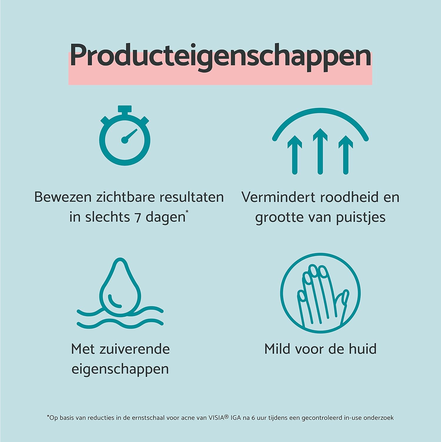 Natuurlijke ingrediënten zoals Tea Tree Oil, bekend om zijn desinfecterende, antibacteriële en ontstekingsremmende eigenschappen. Het helpt de niveaus van acne-veroorzakende bacteriën op de huid te verminderen. Cranberries remmen de hechting van bacteriën aan de huid en hebben een oplichtend effect op vlekken en puistjes. En met probiotica die de groei van goede bacteriën stimuleren en de stabiliteit van de huid en het immuunsysteem microbiome behouden.