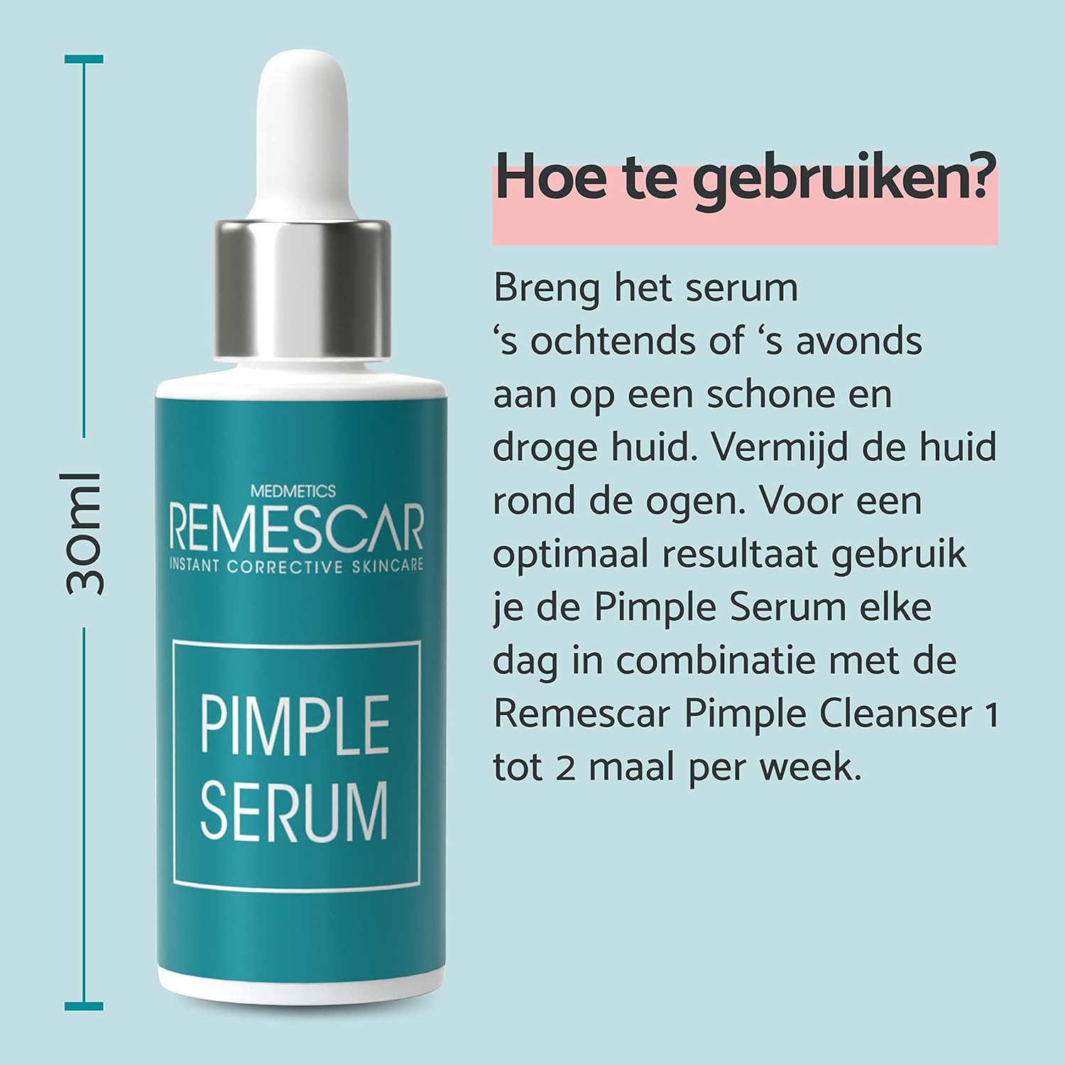 Gebruik het serum dagelijks voor een gladdere, acnevrije, mee-eter-vrije en vlekkeloze huid, en om acne littekens te bestrijden. Voor optimale resultaten wordt aanbevolen om Remescar Acne Care Gezichtsreinigingsgel te gebruiken voor diepe gezichtsreiniging.