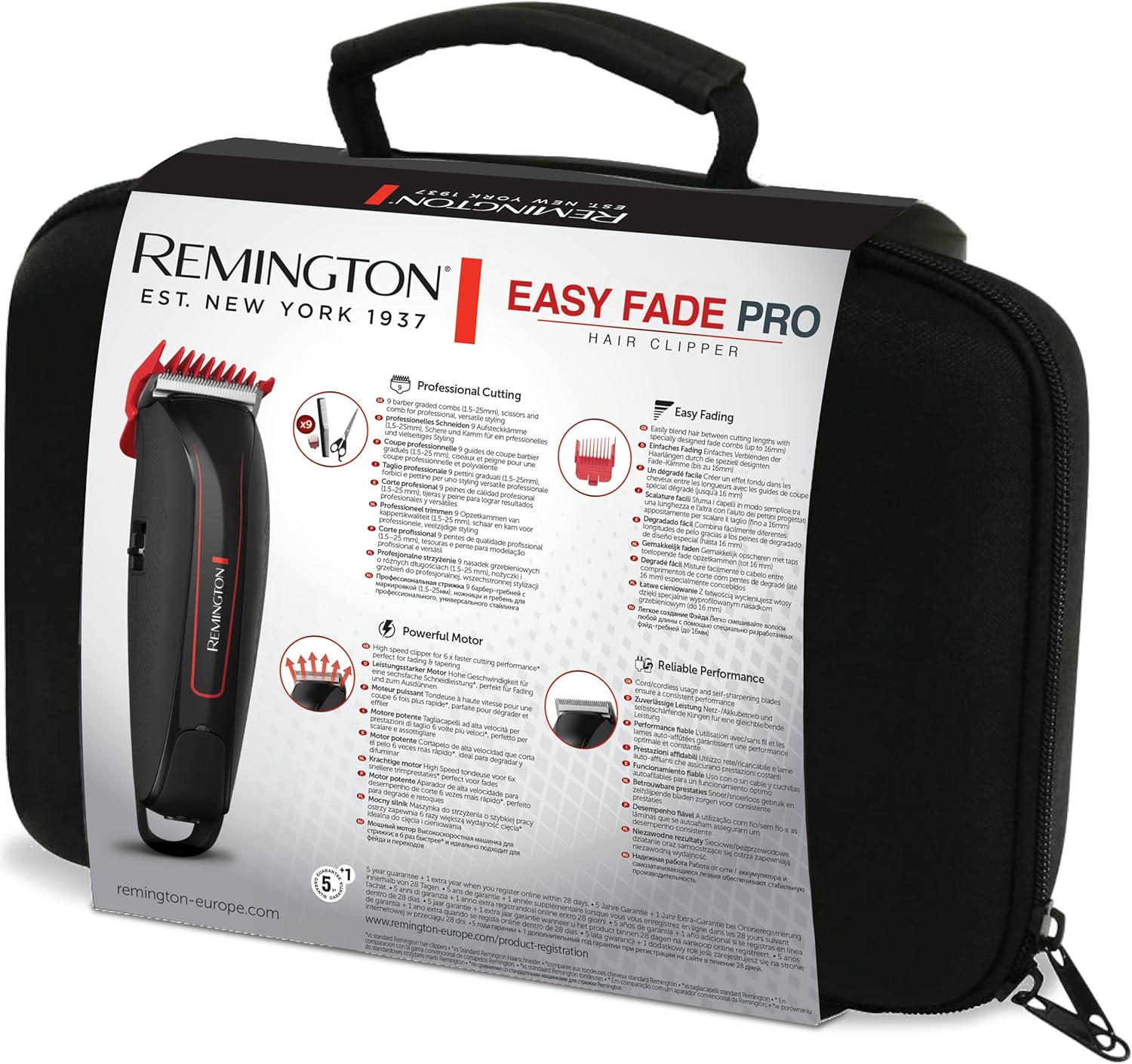 Remington Tondeuse HC550 (zelfslijpende roestvrijstalen messen, 10 afgeschuinde fade-kammen, 9 opzetkammen en andere accessoireset, net-/lithium-ionen-accuwerking) tondeuse Easy Fade