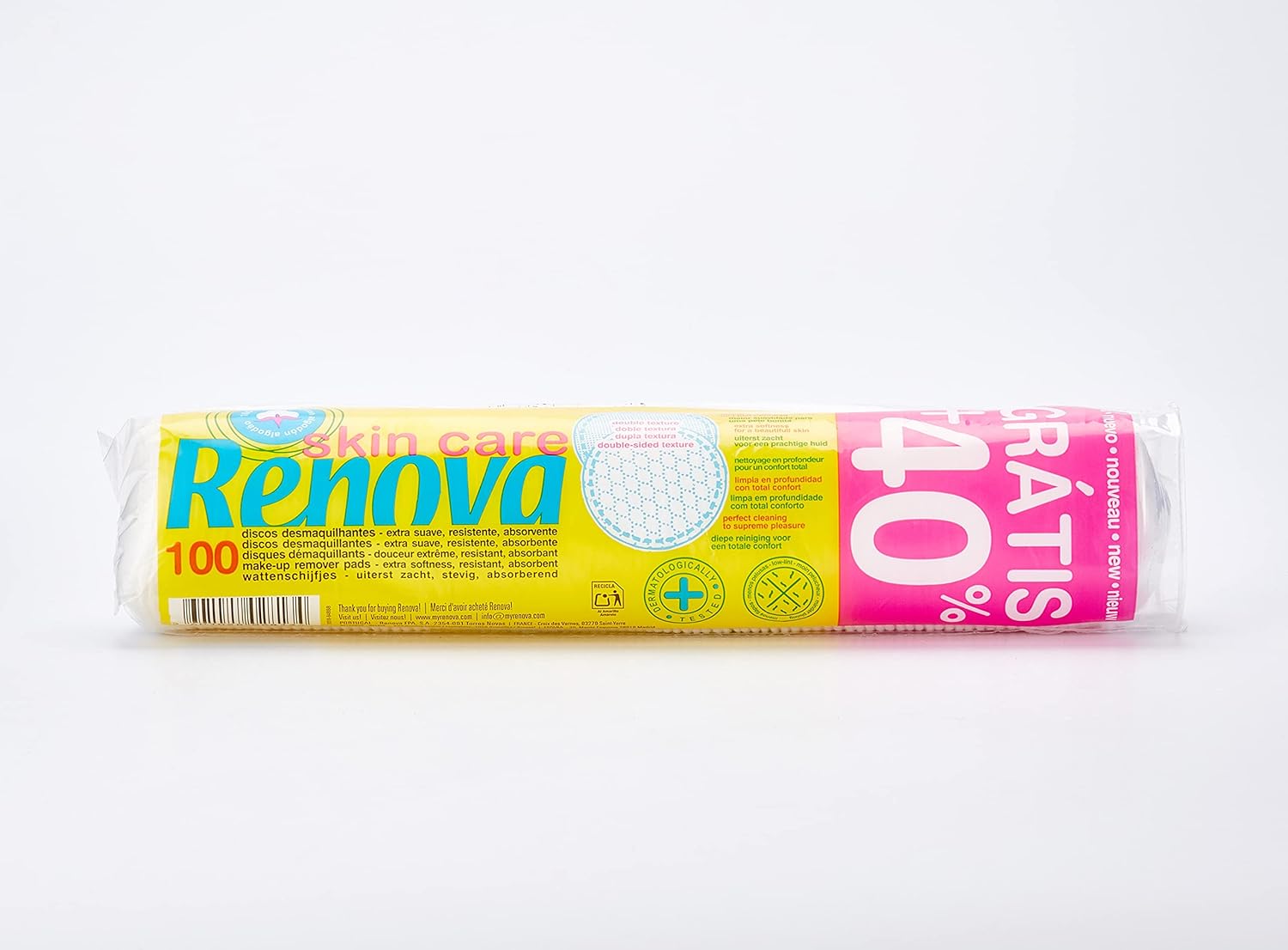 Renova Make-up Remover Pads, 100 stuks, katoen, extra zacht, robuust en absorberend, standaardmaat