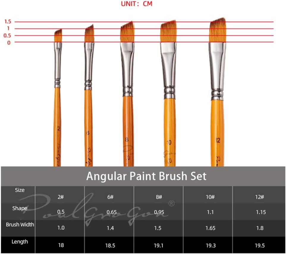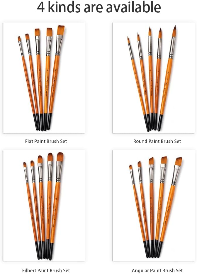 Brush Diversity: The brush kit offers 4 types of brushes in different shapes filbert angle round and flat each available in 5 sizes 2# 6# 8# 10# 12# allowing selection based on needs