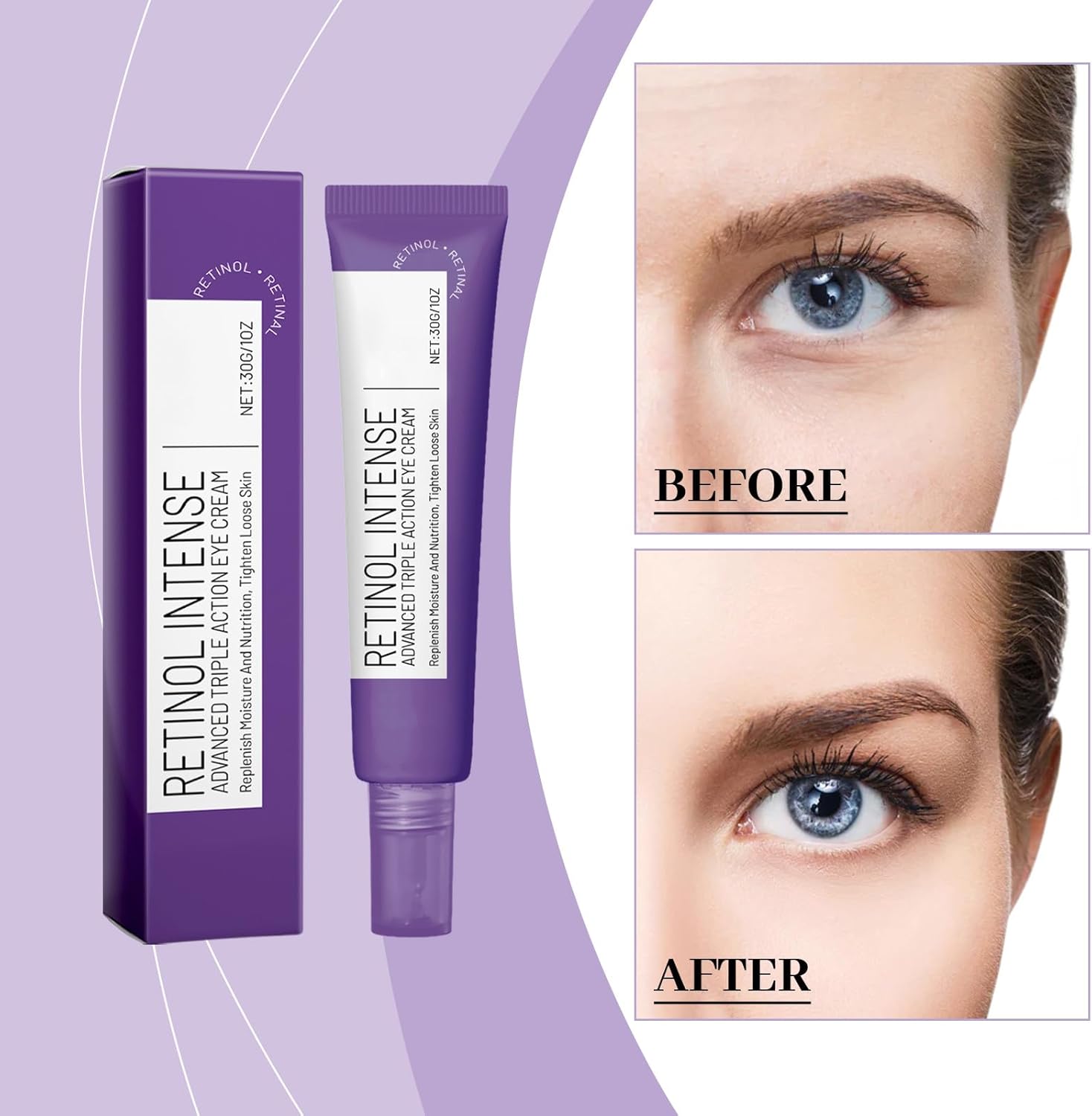 Retinol Reactiverende oogcrème, Retinol Intense Advanced Triple Eye Cream, unieke formule om zwellingen en zwellingen te verminderen en de gezondheid van de ogen te verzorgen, 3