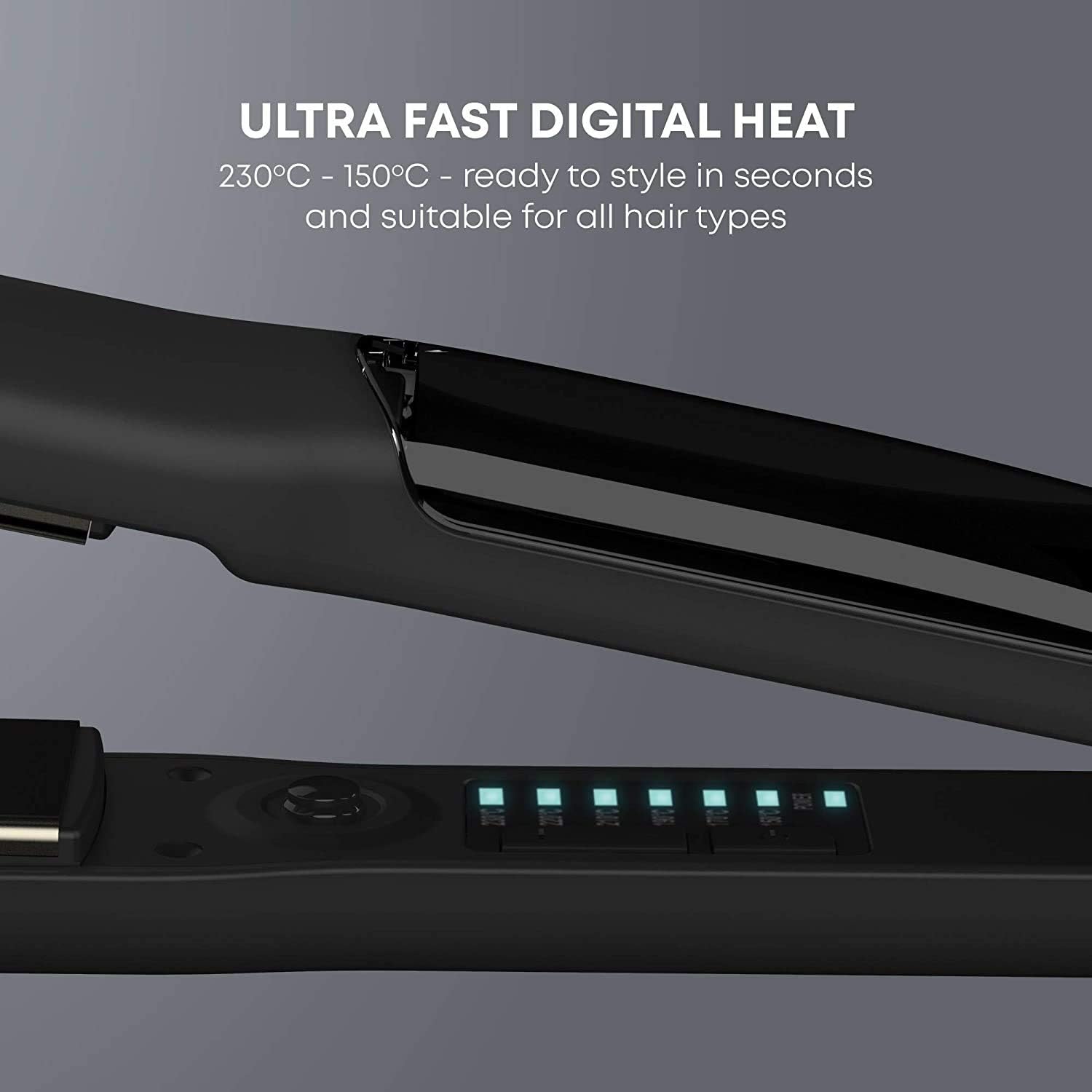 Individuele temperatuurinstellingen: met 3 instelbare stoomstanden en een instelbare temperatuur van 150 °C tot 230 °C voor een optimale styling van fijn, medium en dik haar, kunstmatige extensions en pruiken