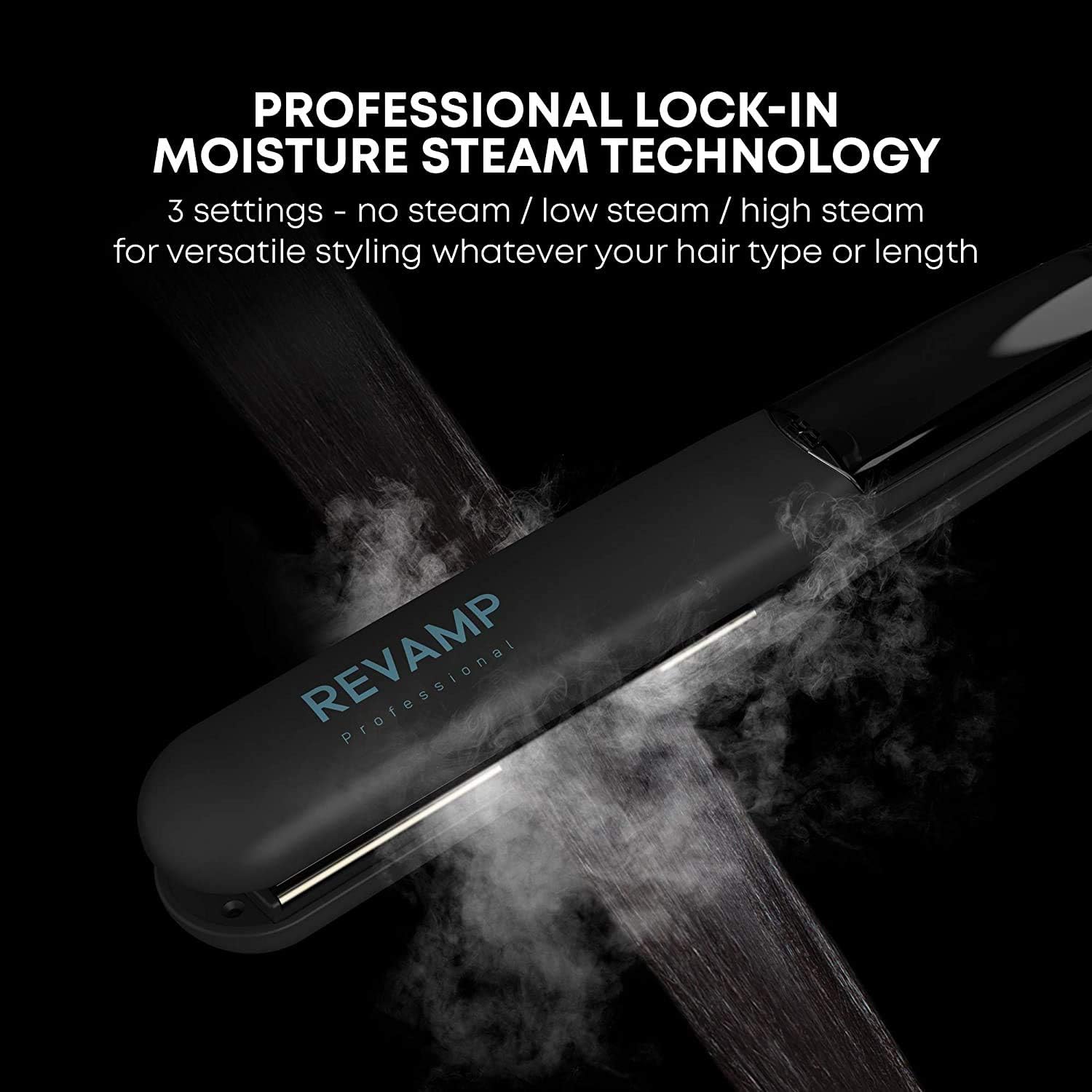 REVAMP Steam Care Keramische stijltang, stoomstrijkijzer, keramische ionenplaten voor veelzijdige frizz-vrije styling, gladmaken, ultrasnelle opwarming, professionele stijltang