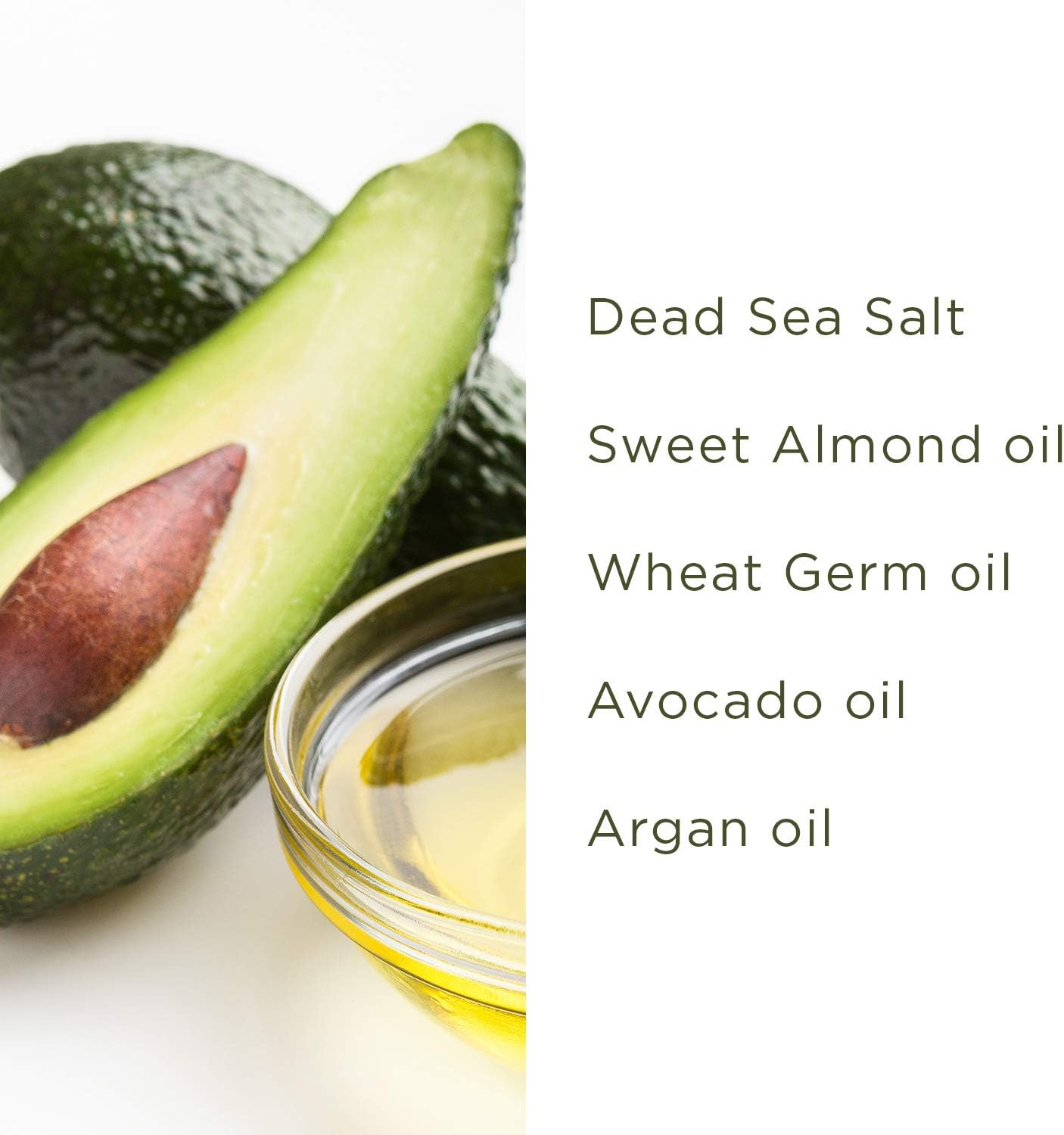 Zout scrub gemengd met natuurlijke oliën – De krachtige mineralen uit de Dode Zee zijn harmonieus gemengd met zoete amandel- en tarweolie. De natriumlaurethsulfaatzouten in combinatie met de oliën verwijderen voorzichtig de dode huidcellen en onthullen een gezonde huidgloed. De unieke lichaamsscrub smelt en exfolieert, waardoor uw huid mooi en zacht wordt