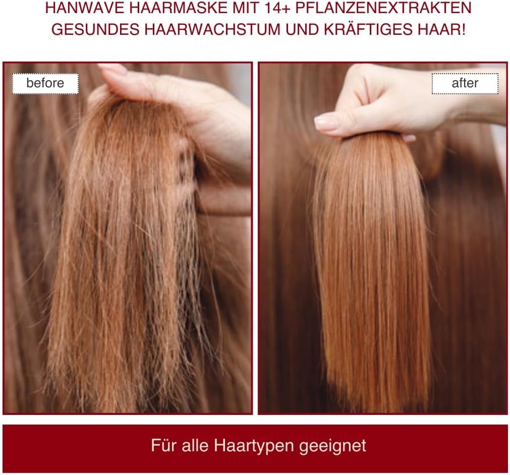 Diese Haarmaske ist genau das, was ich für meine Haare gesucht habe – eine intensive, nährende und revitalisierende Pflege, die meine Haare wieder zu ihrem ursprünglichen Glanz bringt.Die Qualität der Haarmaske ist sehr hochwertig – die Inhaltsstoffe wie Chrysanthemum Boreale, Thuja Orientalis und andere Pflanzenextrakte sind sehr wirksam und bringen meine Haare wieder zu Leben. Die Maske ist auch sehr leicht zu verwenden und kann einfach auf die Haare aufgetragen werden.Ich liebe die Tatsache, dass diese Haarmaske eine All-in-One-Lösung ist, die meine Haare nicht nur pflegt, sondern auch repariert und schützt. Die Maske ist auch sehr gut für meine Haare geeignet, da sie sehr trocken und spröde waren.Nachdem ich die Maske verwendet habe, sind meine Haare wieder weich, geschmeidig und voller Leben. Die Maske hat auch meine Haare sehr gut gepflegt und repariert, so dass sie wieder gesund und stark aussehen.Insgesamt bin ich sehr zufrieden mit meiner Hanwave Revitalisierenden All-in-One-Haarmaske und würde sie jedem empfehlen, der nach einer intensiven, nährenden und revitalisierenden Haarpflege sucht.