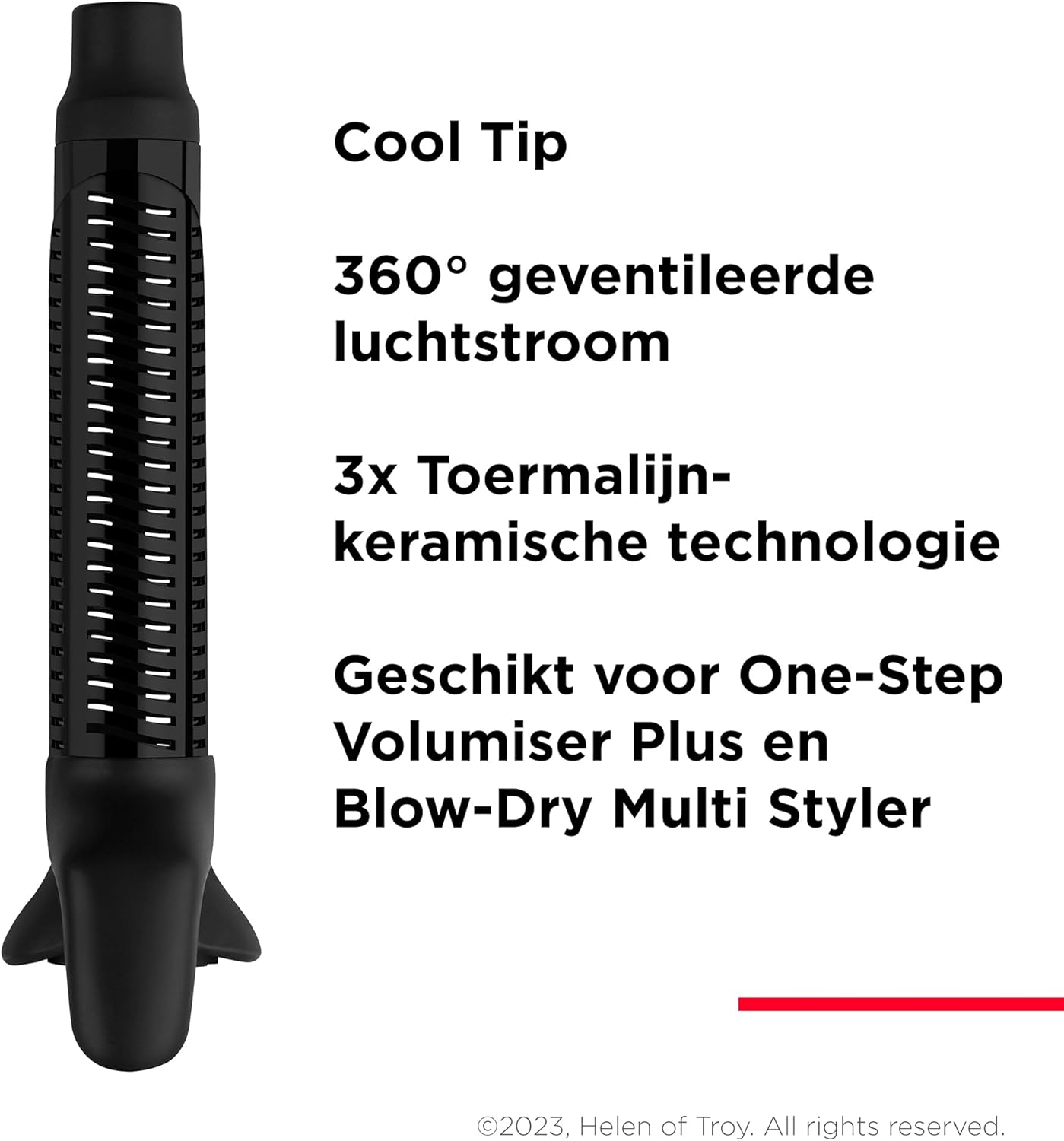 Revlon geeft u vandaag de mogelijkheid om uw One-Step Volumiser Plus of Blow-Dry Muti Styler te personaliseren door extra opzetstukken toe te voegen om verschillende salonstijlen te creëren. Introductie van het opzetstuk voor de krultang met 360° geventileerde luchtstroom: Maak losse krullen met behulp van luchtstroom in plaats van warmte voor minder schade. Met zijn driedubbele staaf van 32 mm voorzien van een coating van keramiek met toermalijn maakt dit apparaat het haar glad en krijgt u minder pluis tijdens het krullen. Cool tip voor gemakkelijke grip.