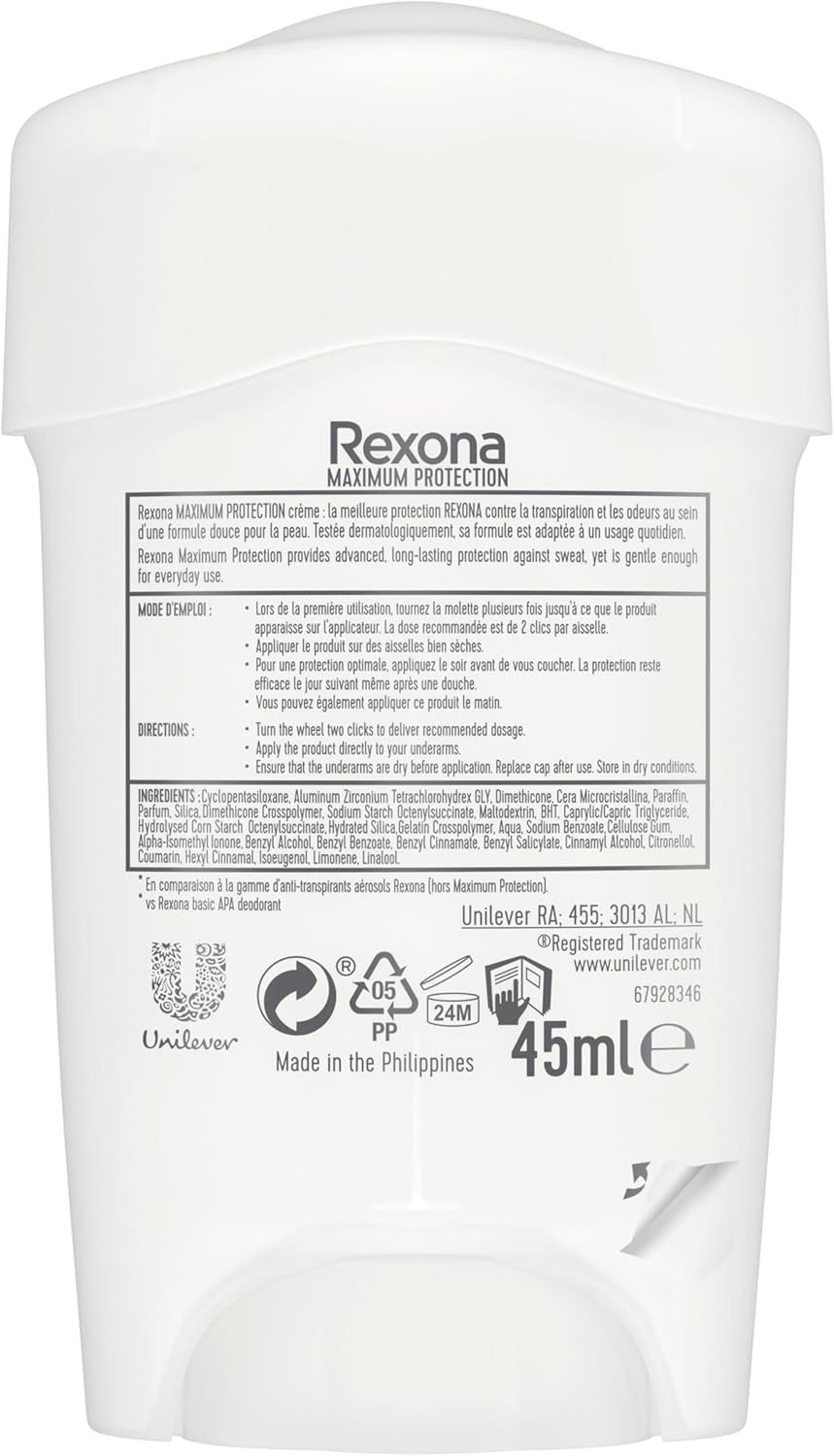Rexona Women Maximum Protection Sensitive Dry Anti-Transpirant Crème Stick, 96 uur bescherming tegen zweet en lichaamsgeur 45 ml