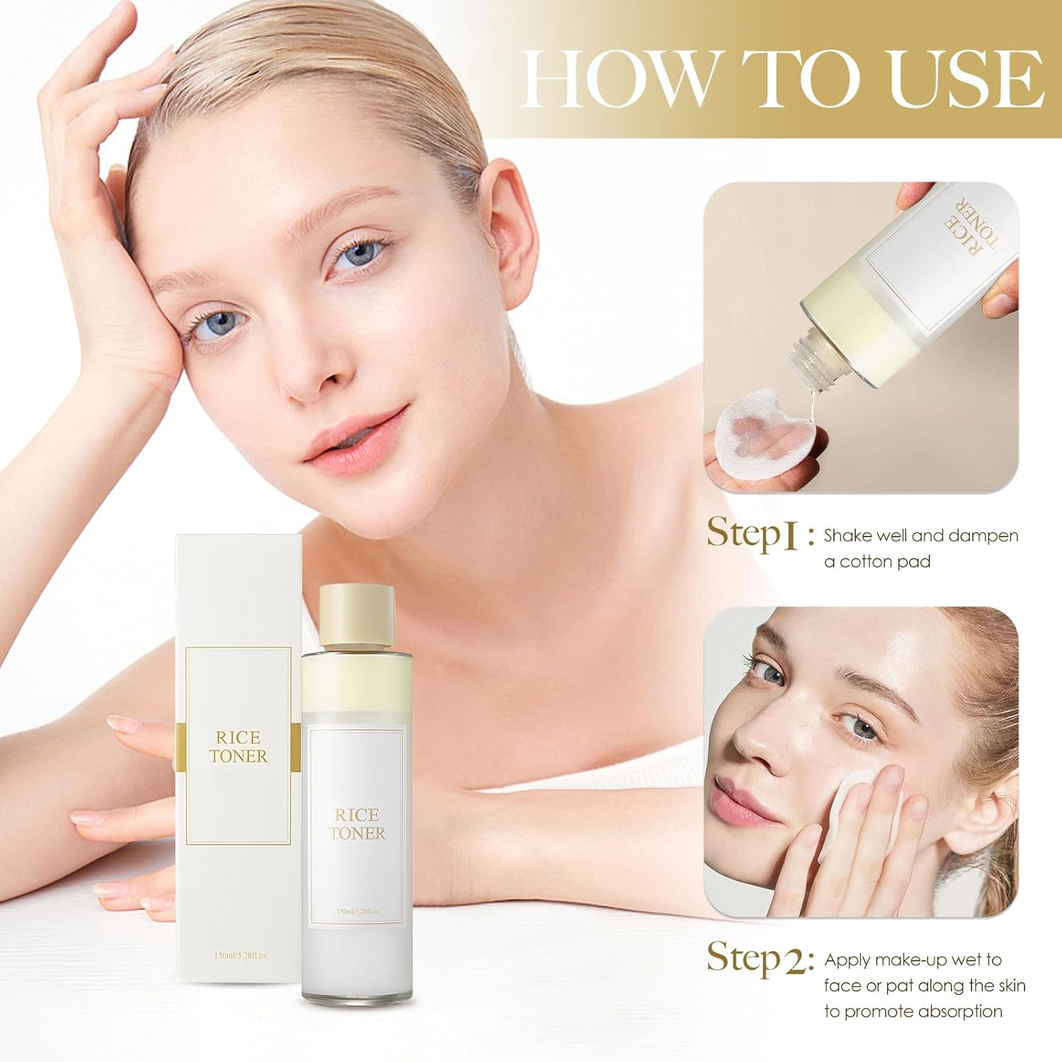 Rice Toner | 150 ml gezichtswater + 40 stuks wattenschijfjes | diepe hydratatie, hydraterende reisextract toner voor de droge gevoelige huid