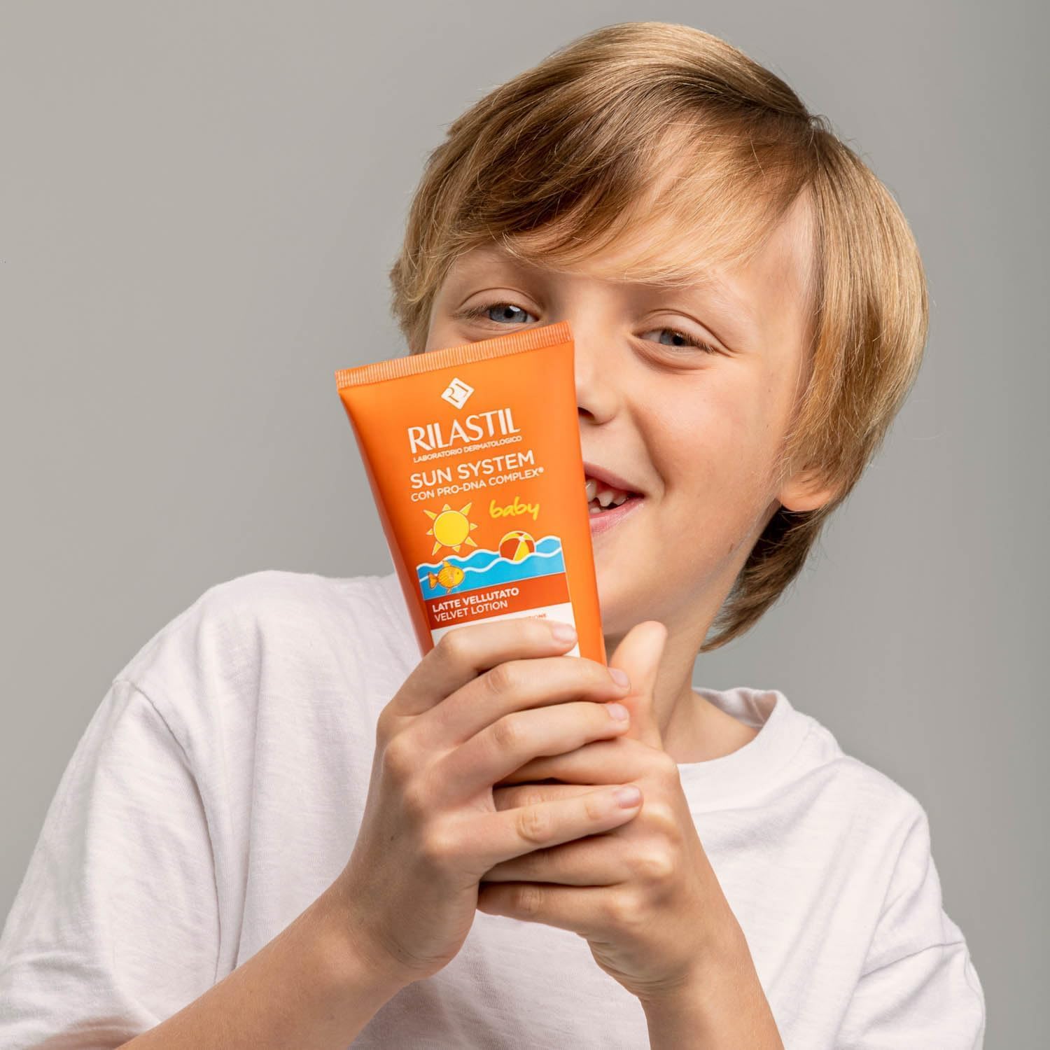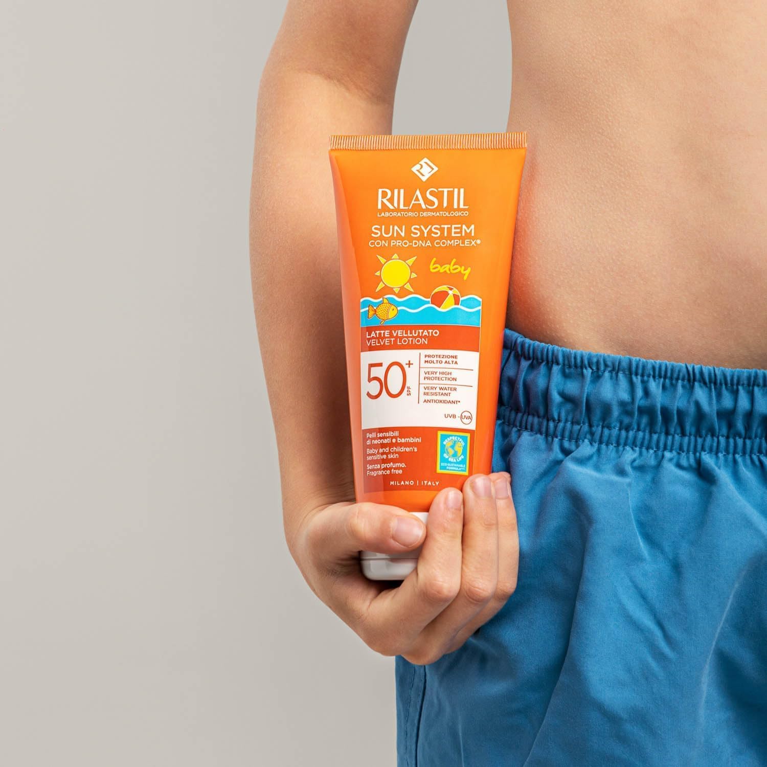 Rilastil Sun System Velluto baby fotobescherming met beschermingsfactor 50+, milieuvriendelijk en waterdicht, 3 tot 14 jaar – 200 ml