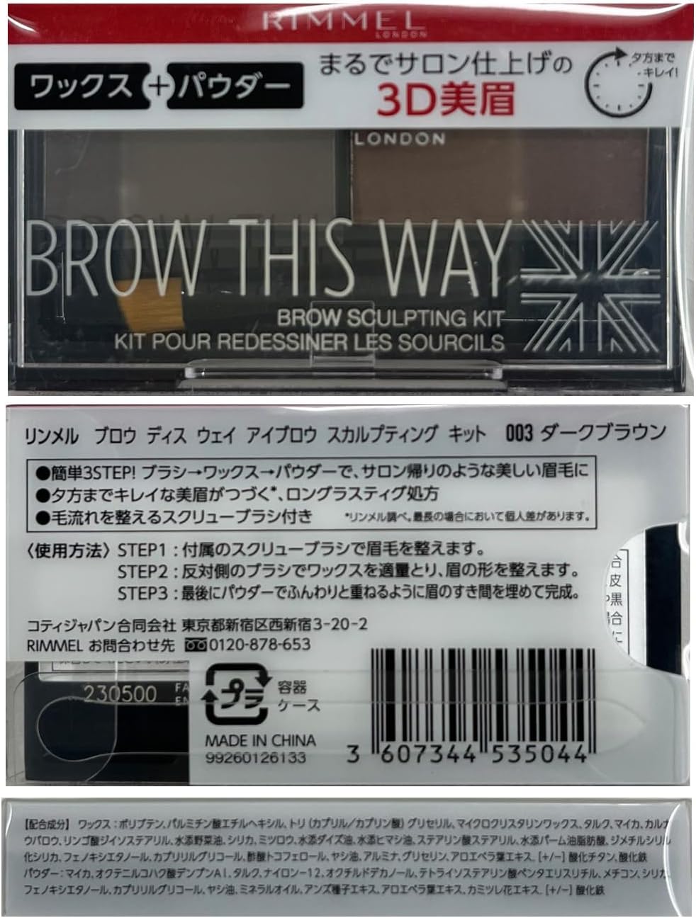 Rimmel London Brow This Way Augenbrauenpoeder-Modellierset, gepflegtes Finish und ultimative Präzision mit Duo Compact Formula, Dunkelbraun, Powder 0.04 oz, Wachs 0.03 oz