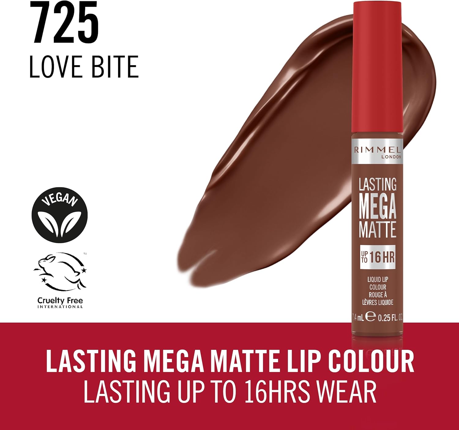Rimmel London Lasting Mega Matte Liquid Lipstick, Long Lasting, Hydrating, Vegan Formula – 725 – Love Bite, 7,4 ml
